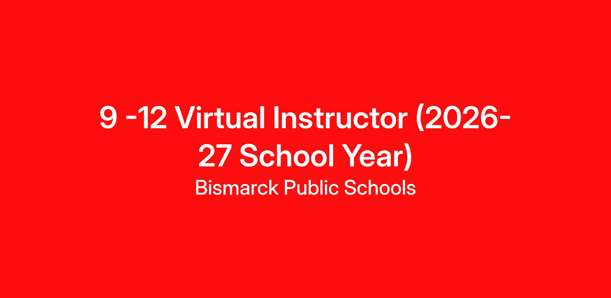 Bismarck Public Schools is accepting applications for a 9-12 Virtual Instructor for the 2026 - 2027 School Year.