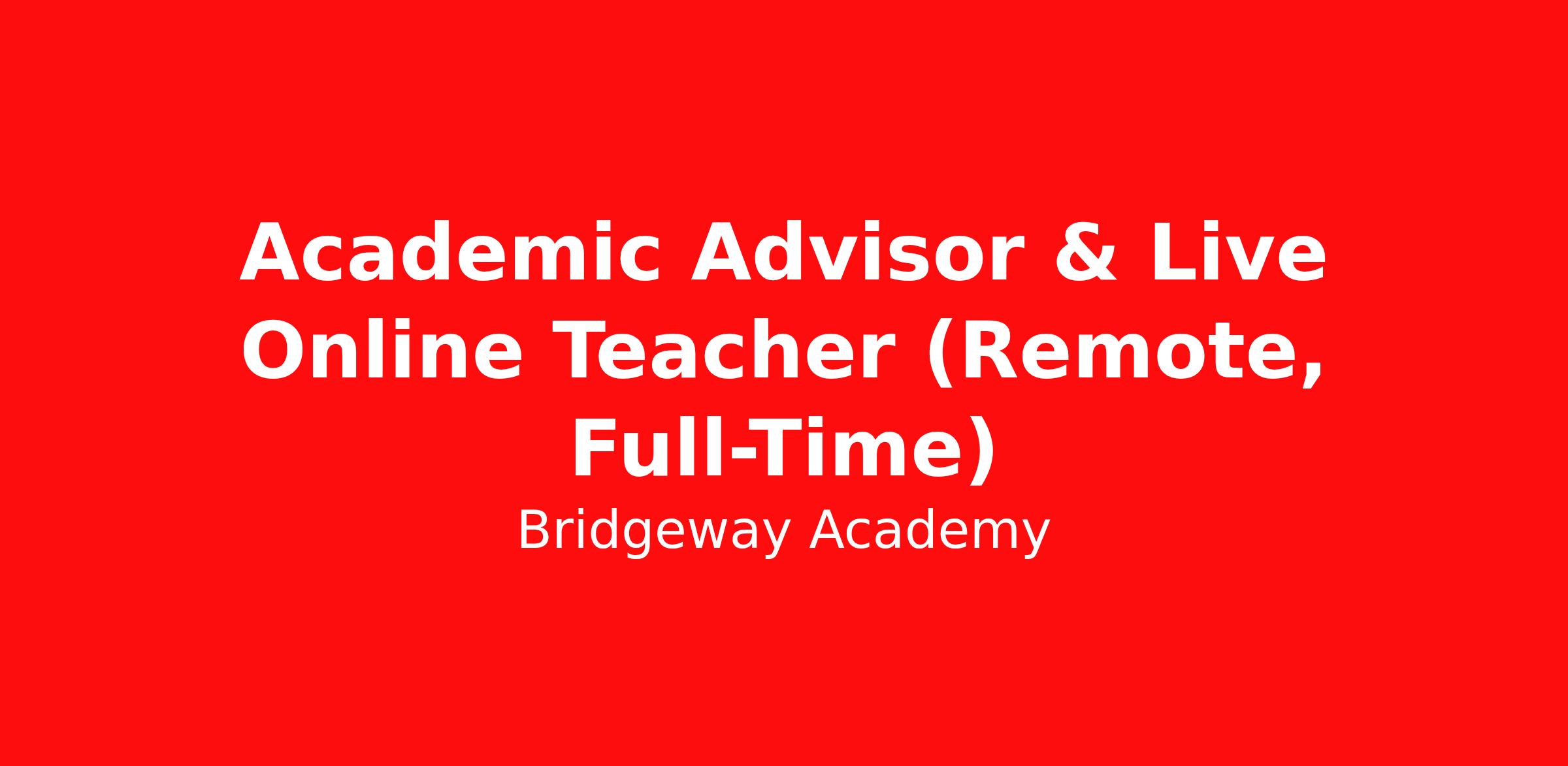 Bridgeway Academy is seeking a Hybrid Academic Advisor & Live Online Teacher to support students and families through personalized academic advising while delivering engaging live online classes.