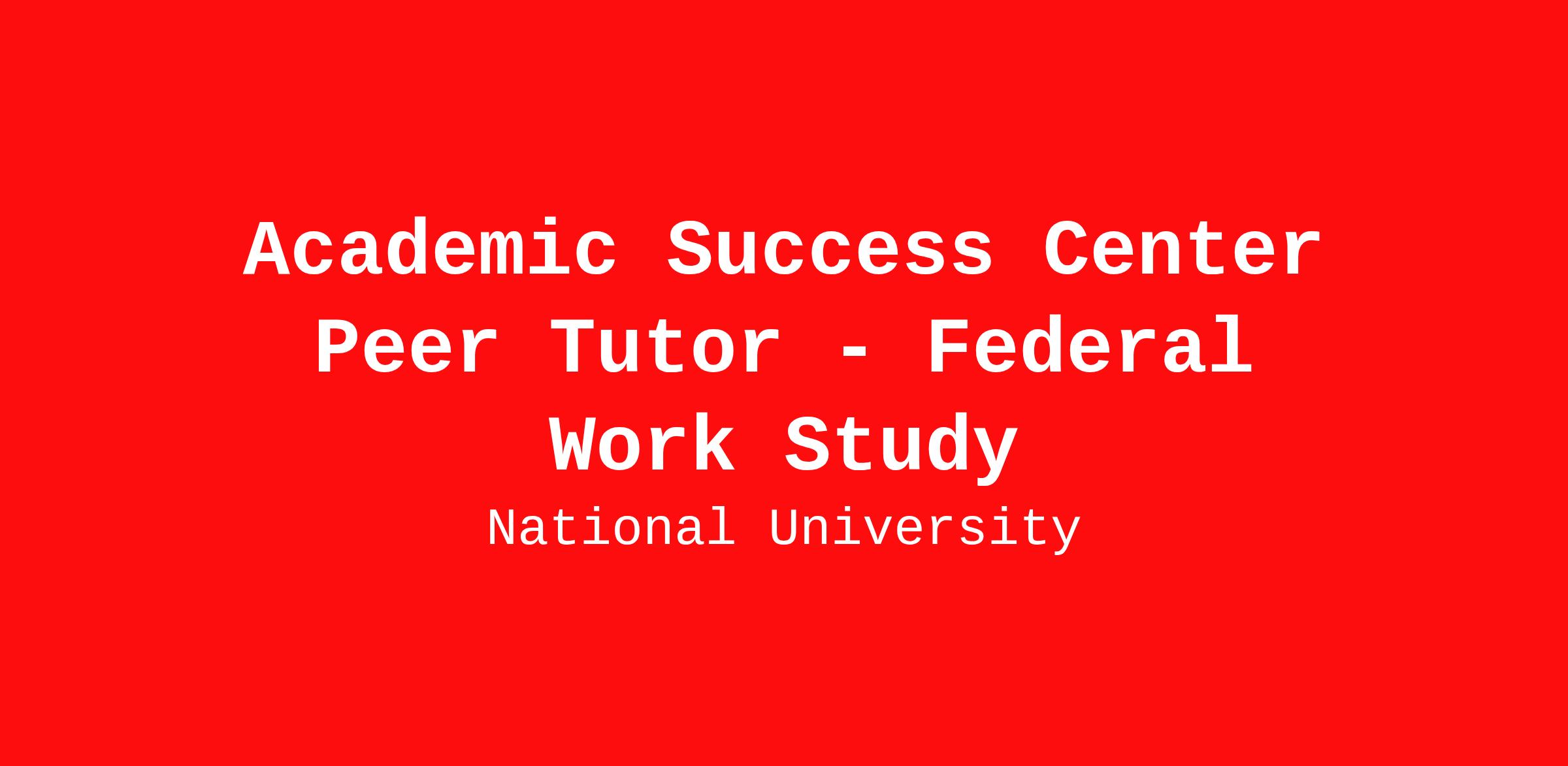 The Federal Work Study position is a part-time, student worker opportunity with National University. The students will provide general support and assistance to their selected department and will work on special projects as assigned and aligned with the student’s stated interests and career goals. Academic Success Center (ASC) peer tutors support students in comprehending academic concepts and developing study skills that will contribute to the student’s academic achievement. Tutors must possess a passion for helping and motivating students to learn new or complex concepts. Peer tutors assist fellow students individually, in small groups, or via ASC Chat to provide personalized support and encouragement.