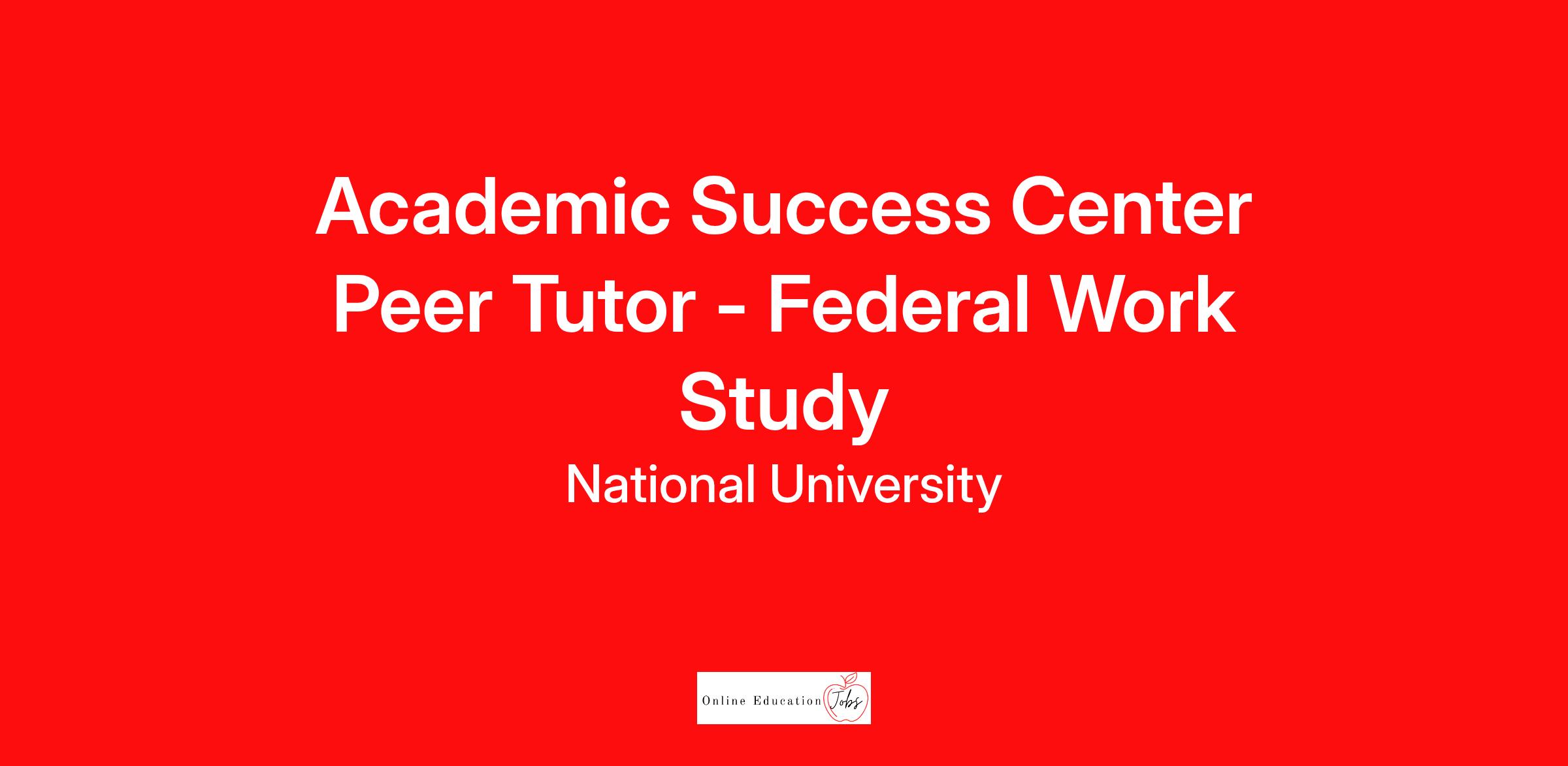 The Federal Work Study position is a part-time, student worker opportunity with National University. The students will provide general support and assistance to their selected department and will work on special projects as assigned and aligned with the student’s stated interests and career goals. Academic Success Center (ASC) peer tutors support students in comprehending academic concepts and developing study skills that will contribute to the student’s academic achievement. Tutors must possess a passion for helping and motivating students to learn new or complex concepts. Peer tutors assist fellow students individually, in small groups, or via ASC Chat to provide personalized support and encouragement.