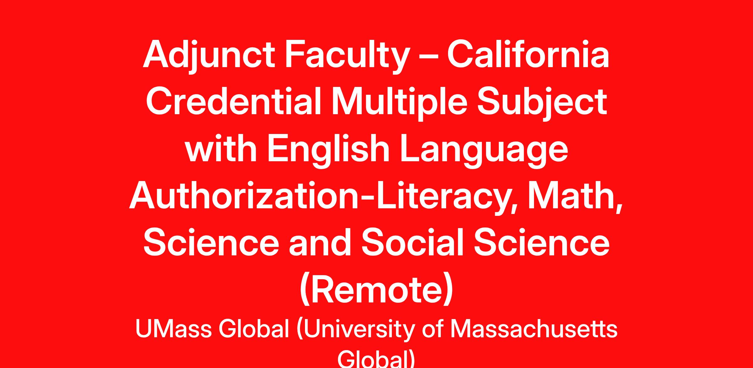 Adjunct Faculty – California Credential Multiple Subject with English Language Authorization-Literacy, Math, Science and Social Science