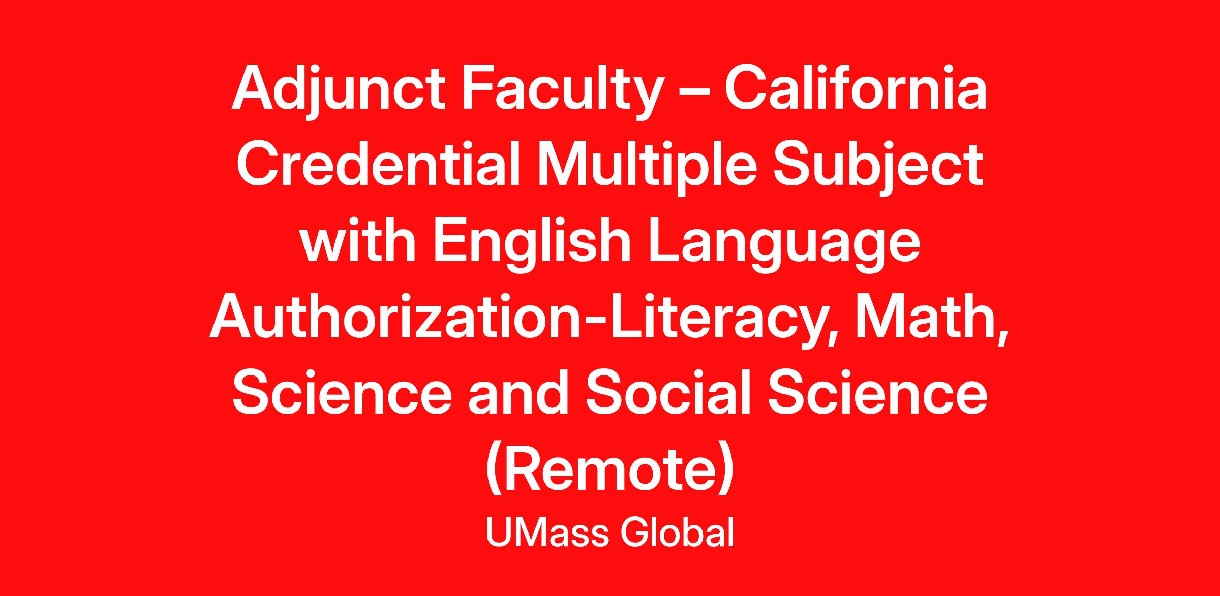 Adjunct Faculty – California Credential Multiple Subject with English Language Authorization-Literacy, Math, Science and Social Science