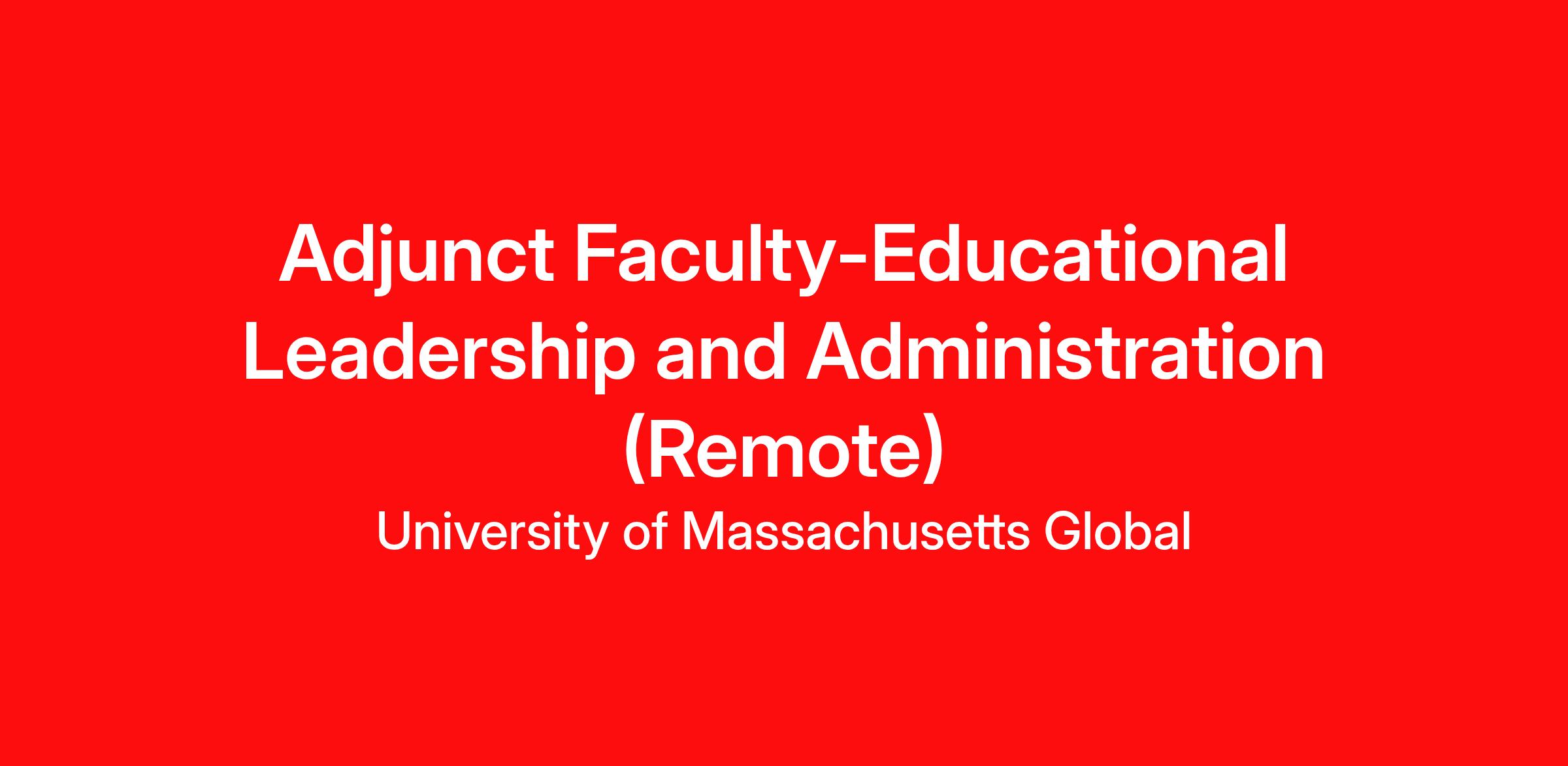 Adjunct Faculty -Educational Leadership and Administration (Remote)
