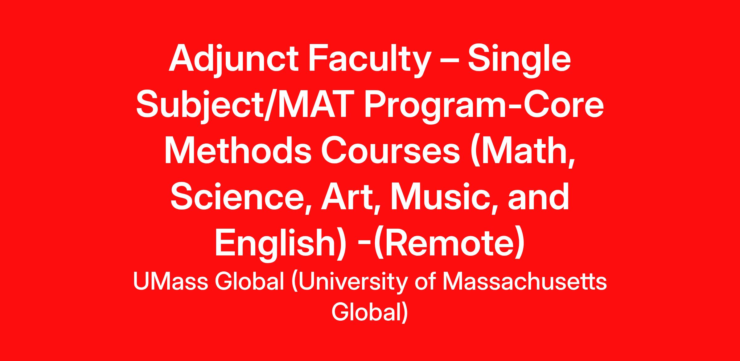 Adjunct Faculty – Single Subject/MAT Program-Core Methods Courses (Math, Science, Art, Music, and English)-(Remote)