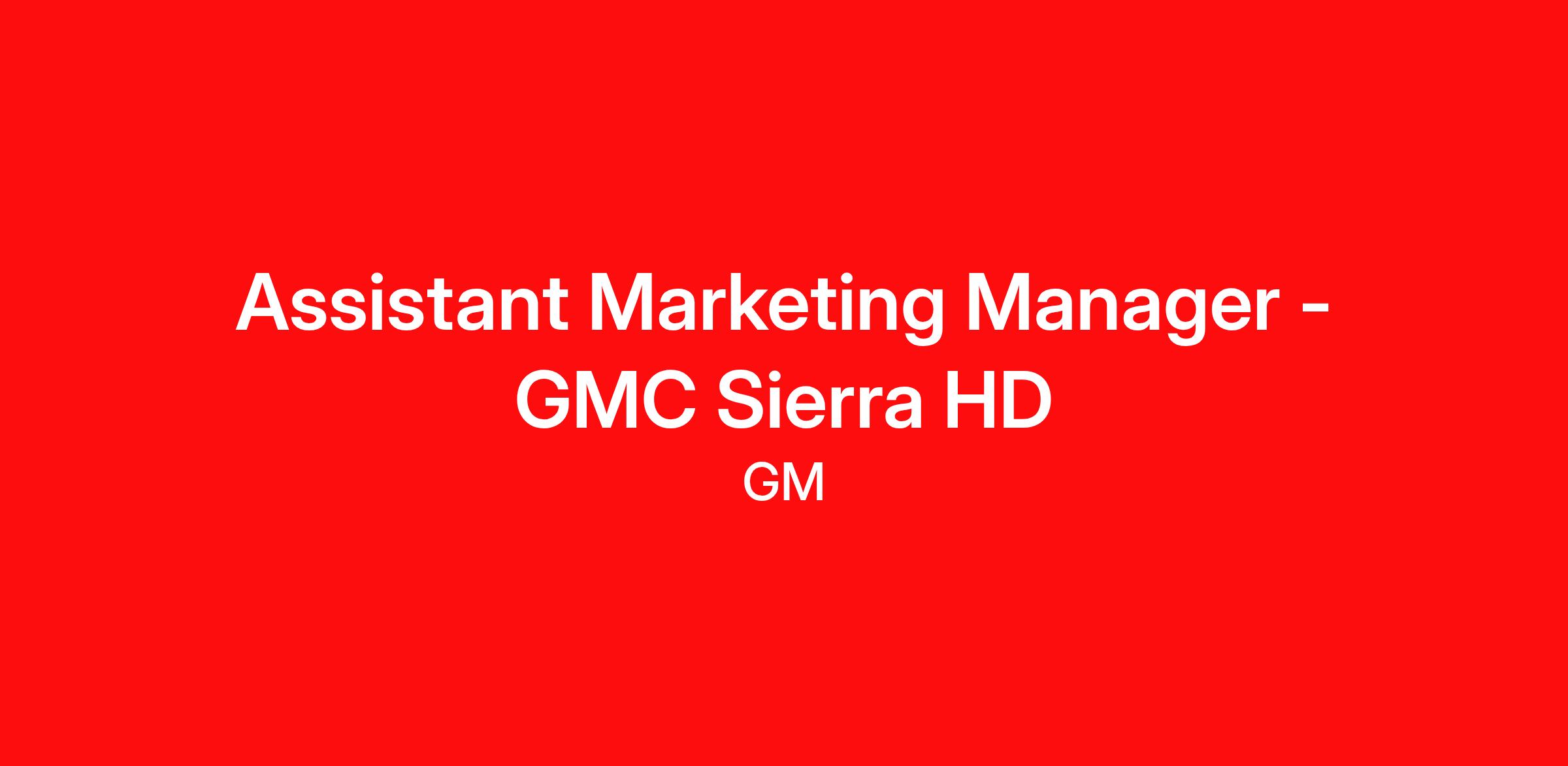 The primary purpose is to provide support and oversee the lifecycle management of the GMC Sierra HD truck, including development and execution of the marketing strategy through positioning, pricing, packaging, messaging, and various cross-functional marketing activities in support of business objectives. Job responsibilities also include understanding the customer, competition, and the segment dynamics, identifying market trends, appropriate packaging and preparing for the next generation vehicles. This position reports to the GMC Sierra Marketing Manager.