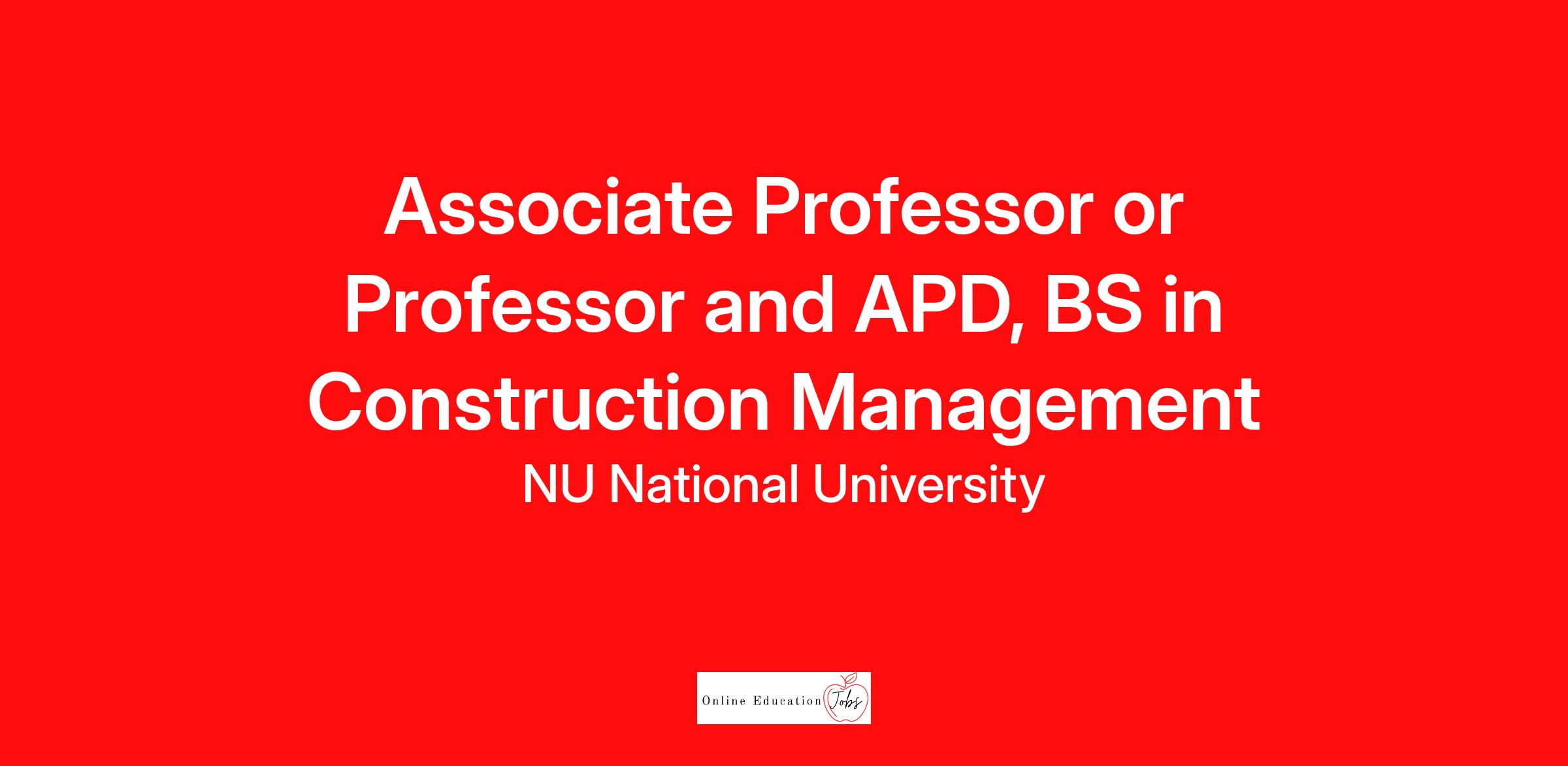 The Department of Engineering, Data, and Computer Sciences in the College of Business, Engineering, and Technology at National University invites applications for an Associate or a Full Professor and Academic Program Director in Construction Management. Rank is commensurate with qualifications and experience. The successful candidate will have a demonstrated record of excellence in teaching, scholarship in their field, and a commitment to serving the University’s adult student body. This position is remote or hybrid for San Diego-based candidates. This position works closely with other faculty within the discipline and administration contributing to programmatic strategies that ensure program quality, student engagement, and success. We are looking for a candidate who has leadership experience in academic program management.
