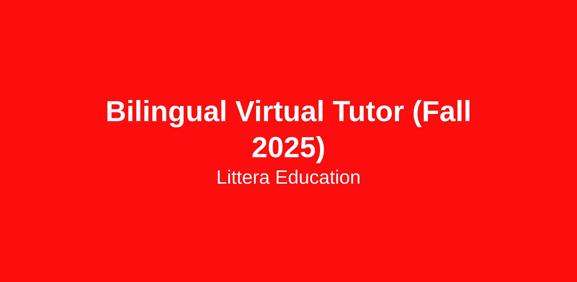 Are you passionate about helping students succeed? Join Littera Education in Fall 2025 and make a difference! We're looking for dedicated bilingual online reading and math tutors to provide high-quality, one-on-one or small-group tutoring to students nationwide to join us this Fall!