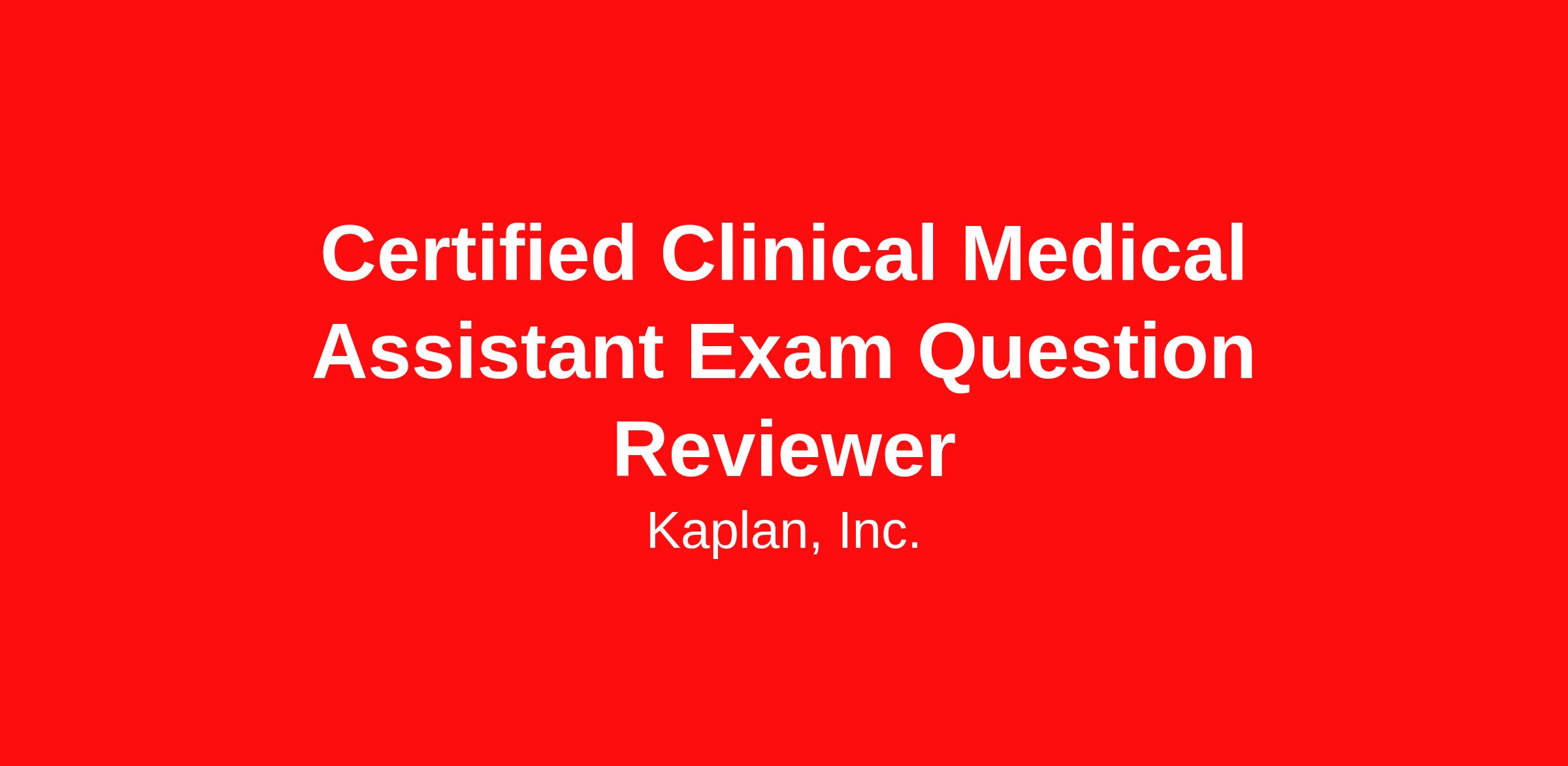 Project Description Kaplan is seeking a Certified Clinical Medical Assistant Exam Subject Matter Expert to join us as a Contractor to contribute to the development of test-like exam questions. This is a remote and asynchronous opportunity, allowing you the flexibility to complete the work outside of standard business hours.
