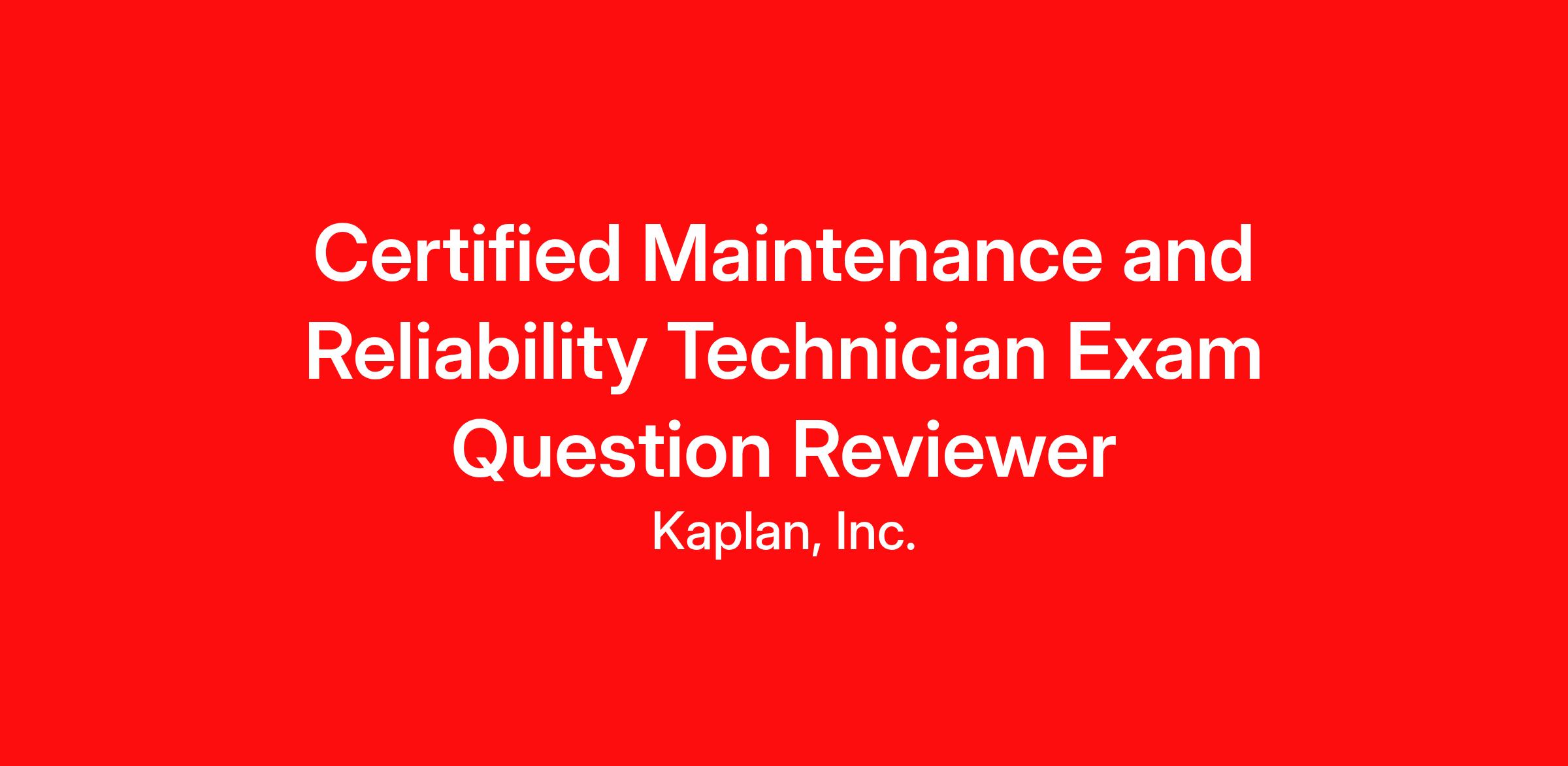 Kaplan is seeking a Certified Maintenance and Reliability Technician Exam Subject Matter Expert to join us as a Contractor to contribute to the development of test-like exam questions. This is a remote and asynchronous opportunity, allowing you the flexibility to complete the work outside of standard business hours.