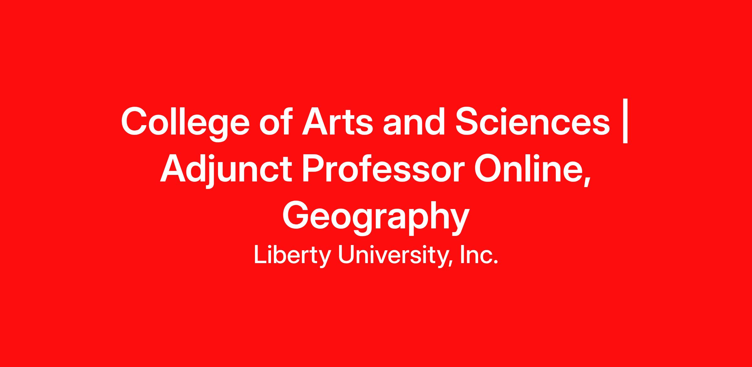 This posting is to teach courses in Geography. An Online Adjunct Faculty in the College of Arts & Sciences is a part-time, non-benefited, fully online position.