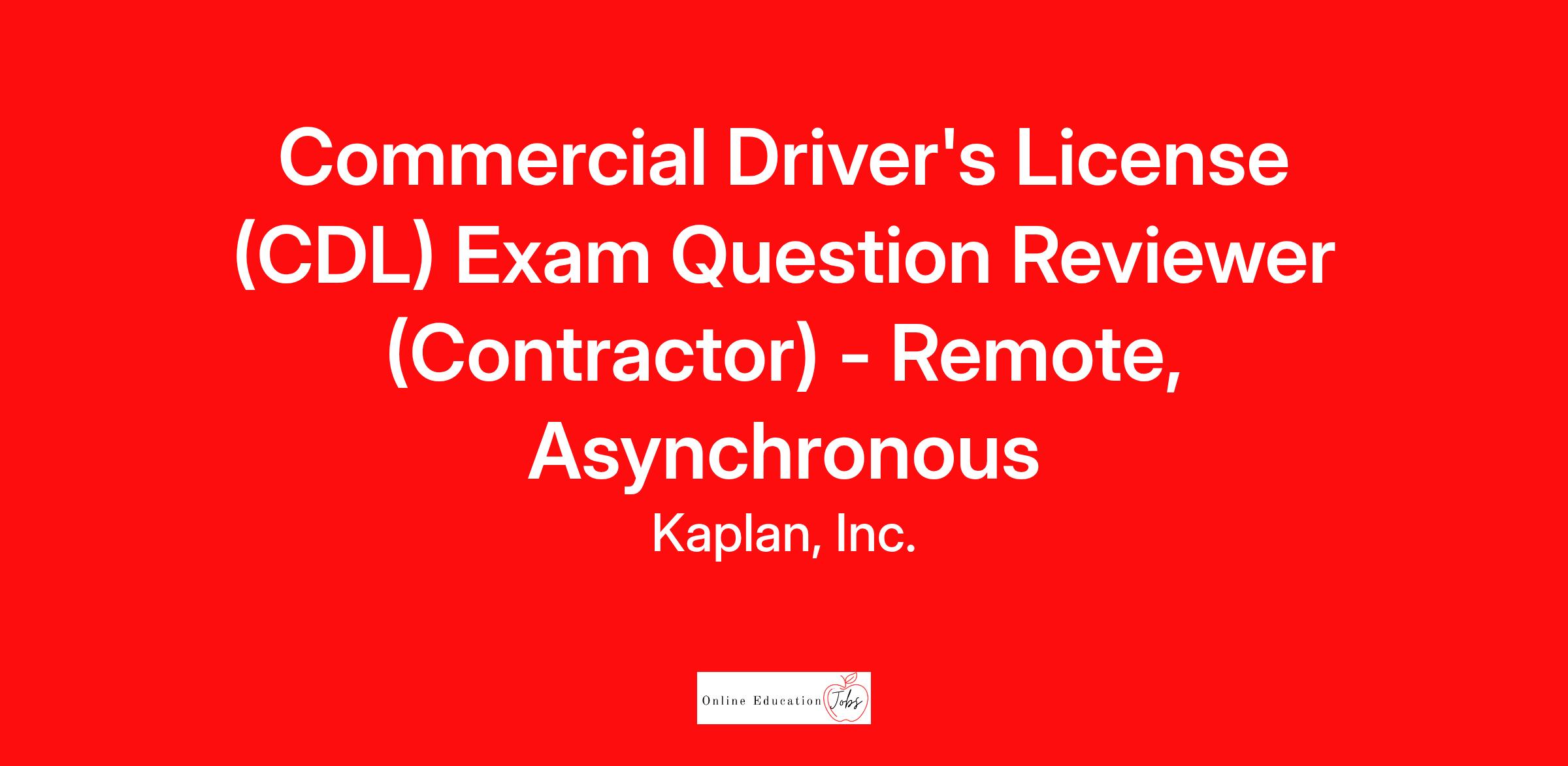 Kaplan is seeking a subject matter expert to join us as a Contractor to contribute to the development of a new quiz bank for the Commercial Driver's License (CDL) exam. This is a remote and asynchronous opportunity, allowing you the flexibility to complete the work outside of standard business hours.