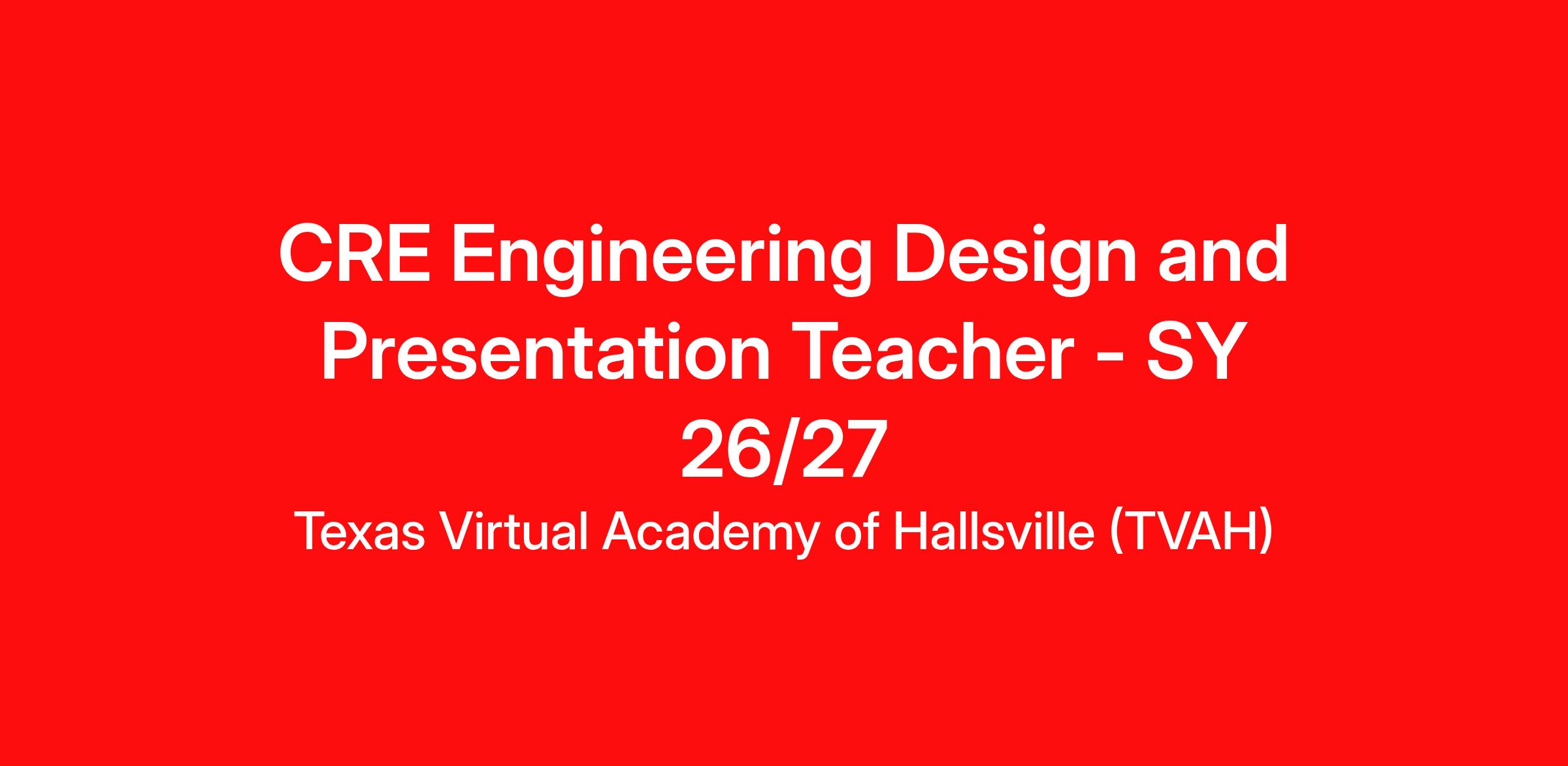 Required Certificates and Licenses: Engineering Design and Presentation I or II (Grades 9–12), Mathematics/Physical Science/Engineering (Grades 6–12), Mathematics (Grades 6–12), Secondary General (Grades 6-12 or 8-12), Industrial Arts, Industrial Technology, Technology Education (Grades 6–12), Trade and Industrial Education (Grades 6–12 or Grades 8–12), Vocational Trades and Industry