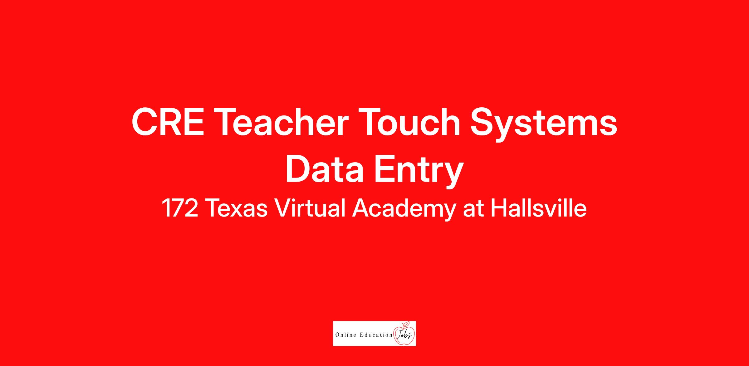 The CRE Teacher Touch System, Data Entry is state certified teacher and/or alternatively certified CRE/CTE Teacher responsible for delivering specific course content in an on-line environment. The CRE/CTE Teacher must also be a provide instruction, support, and guidance, manage the learning process, and focus on students' individual needs. Teachers monitor student progress through K12's learning management system, and work actively with students and parents to advance each students learning and to develop and monitor a plan for post-secondary success via online tools like Career Builder, Career Cruising, etc.