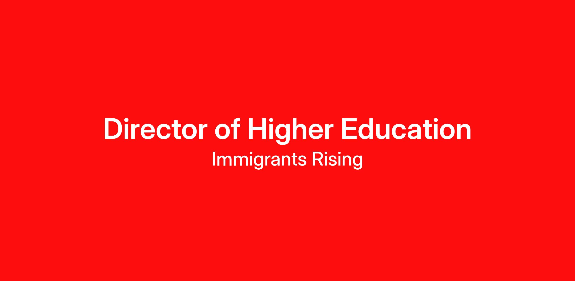 The Director of Higher Education provides strategic and operational leadership for Immigrants Rising’s higher education portfolio as a core pathway to educational access, persistence, and completion for undocumented students.
