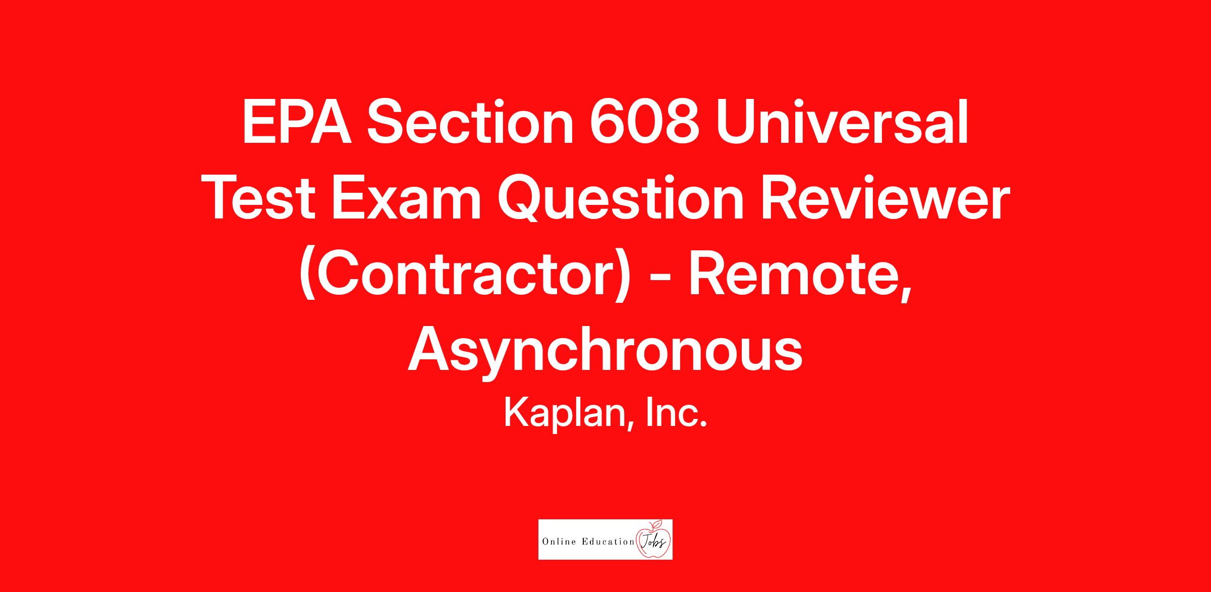 Kaplan is seeking a subject matter expert to join us as a Contractor to contribute to the development of a new quiz bank for the EPA Section 608 exam. This is a remote and asynchronous opportunity, allowing you the flexibility to complete the work outside of standard business hours.