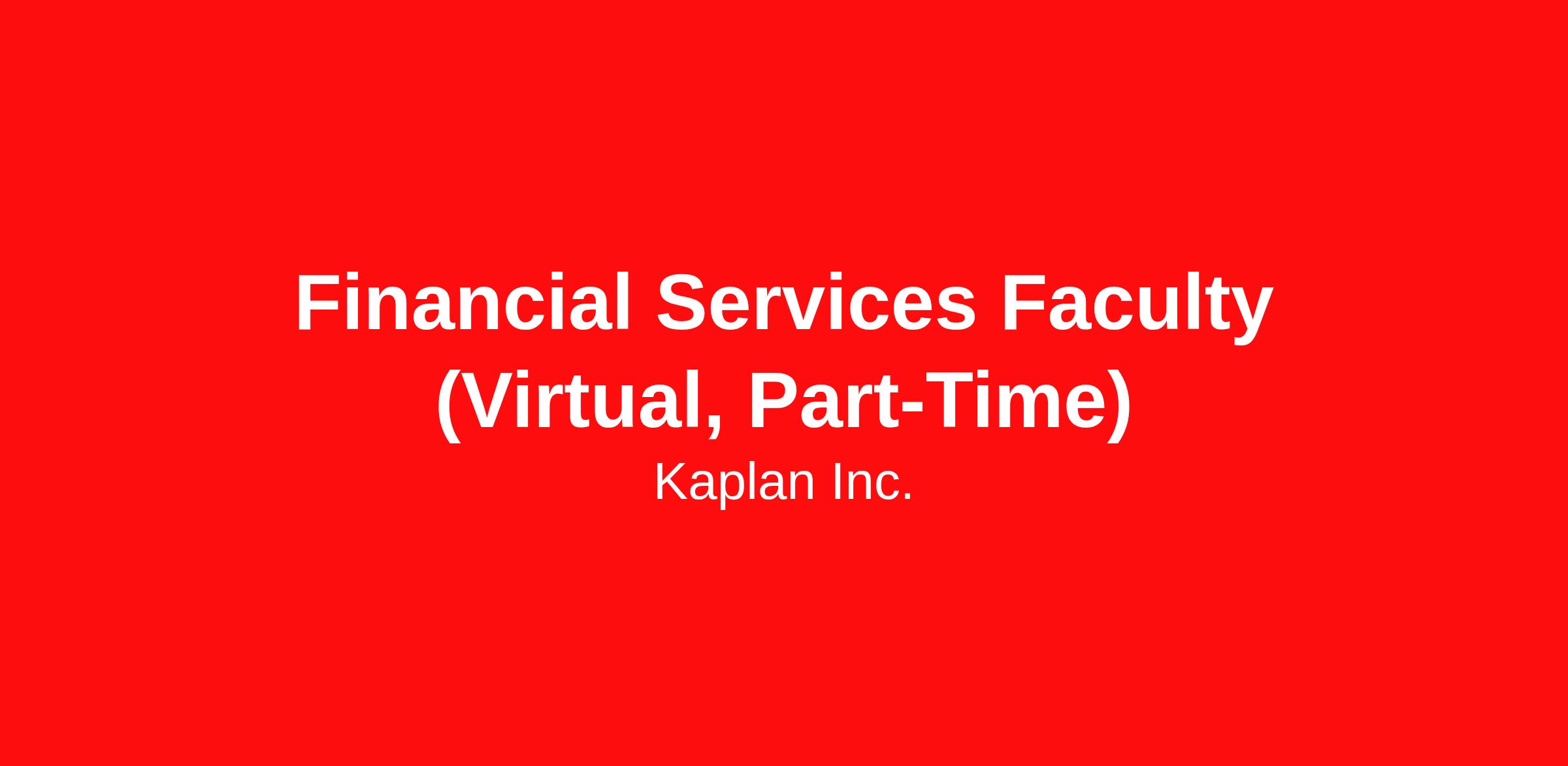 Financial Services Faculty (Virtual, Part-Time)