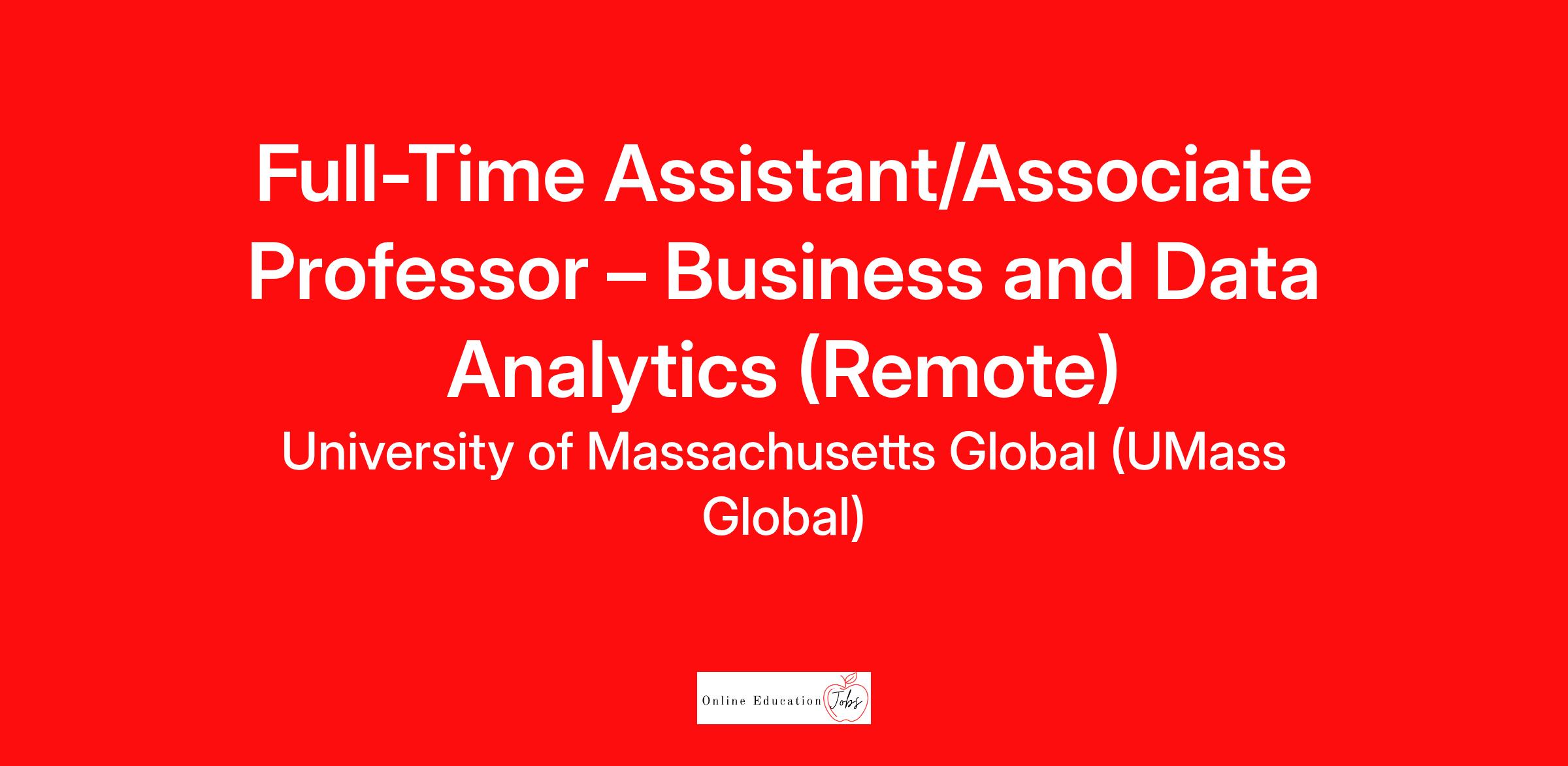 UMass Global is seeking a dynamic, full-time faculty member to join the School of Business and Professional Studies as an Assistant or Associate Professor of Business and Data Analytics. This is a 12-month position.