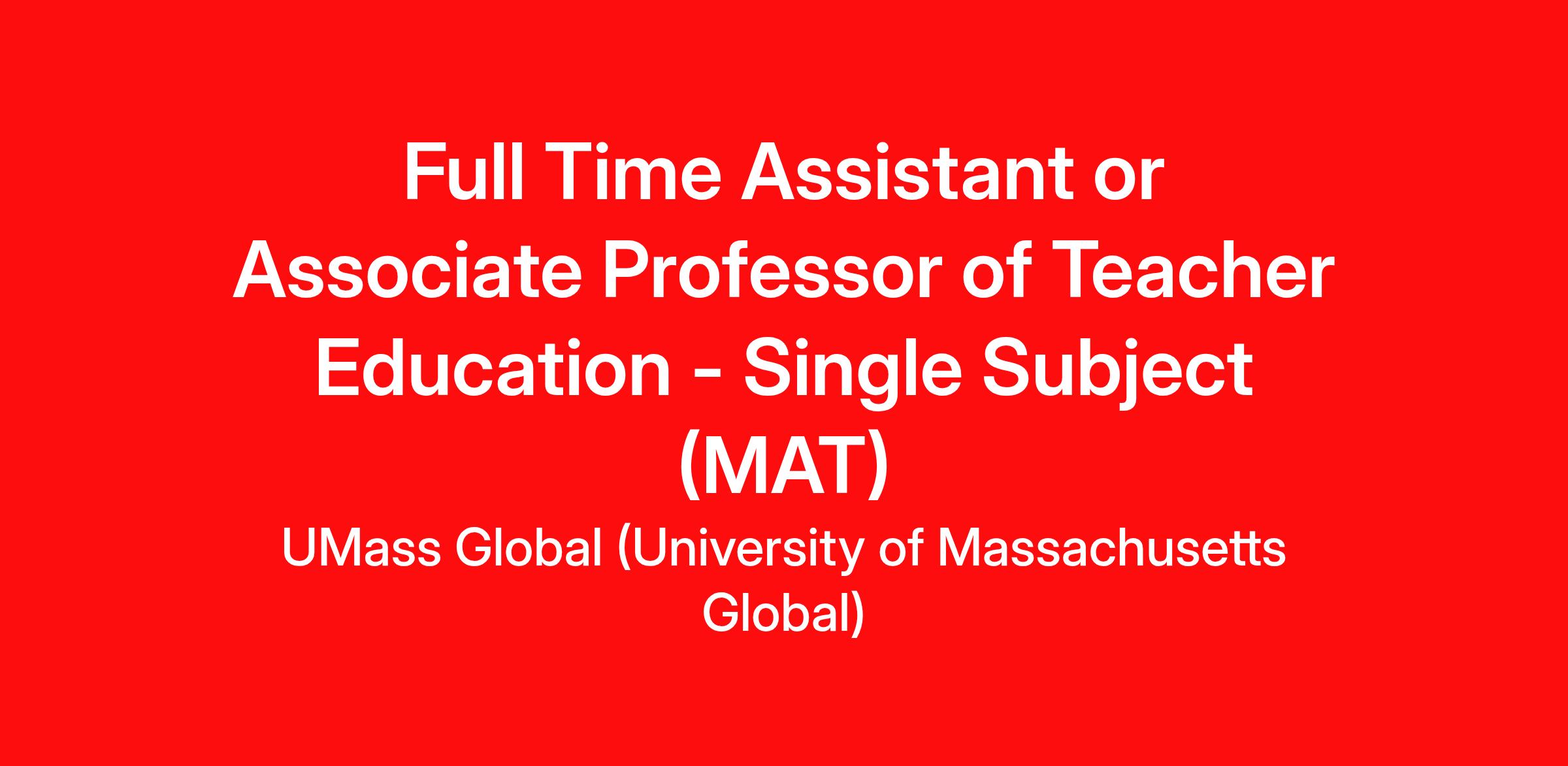 Are you passionate about expanding access to higher education and shaping the future of Teacher Education in the single subject credential discipline. The School of Education at the University of Massachusetts Global is seeking a dynamic, mission-driven faculty member to join our fully remote academic community starting August 1, 2026. This full-time appointment is anticipated at the Assistant Professor level, with consideration for Associate Professor based on experience.