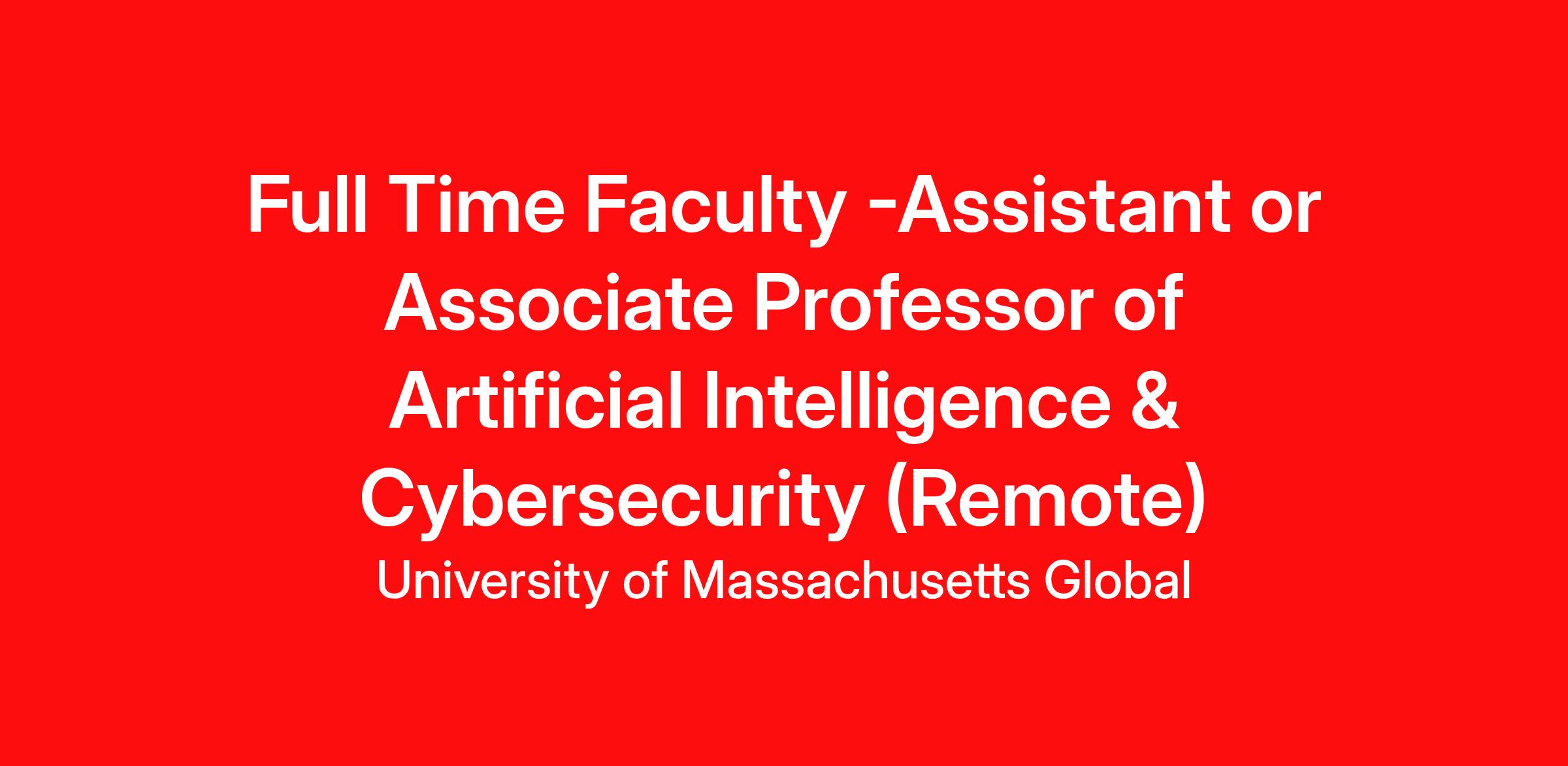 Are you passionate about expanding access to education and shaping the future of Artificial Intelligence & Cybersecurity? The School of Business & Professional Studies at the University of Massachusetts Global is seeking a dynamic, mission-driven faculty member to join our fully remote academic community starting August 1, 2026 This full-time appointment is anticipated at the Assistant Professor level, with consideration for Associate Professor based on experience.