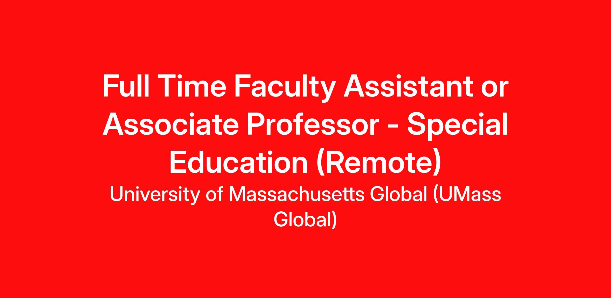 Are you passionate about expanding access to education and shaping the future of Special Education? The School of Education at the University of Massachusetts Global is seeking a dynamic, mission-driven faculty member to join our fully remote academic community starting April, 2026. This full-time appointment is anticipated at the Assistant Professor level, with consideration for Associate Professor based on experience.