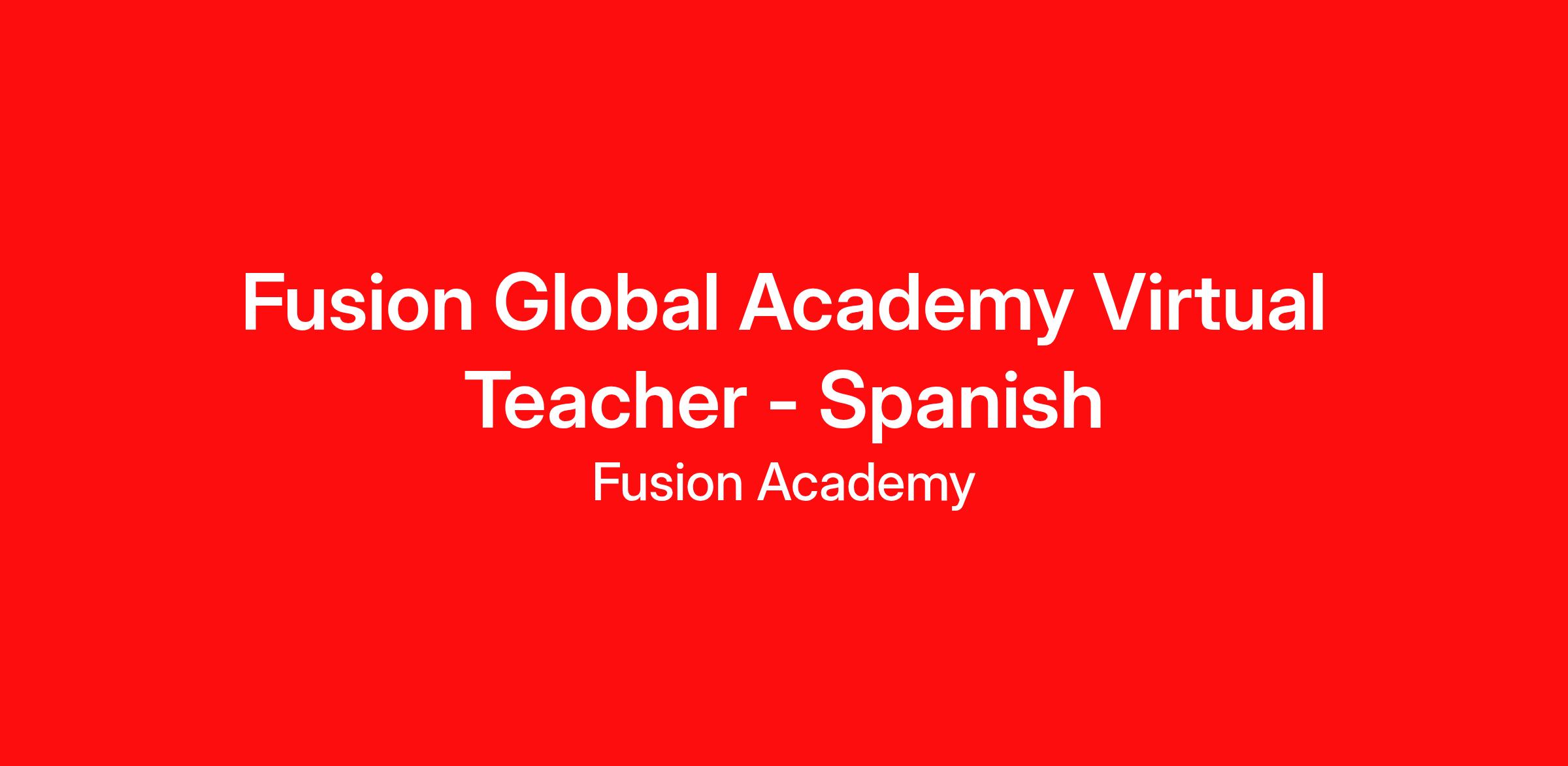 Fusion Global Academy has an opening for a Spanish language and culture Teacher. This position provides a student centered, supportive classroom that promotes compassion and tolerance, emotional security, resourcefulness, and independent critical thinking while addressing the individual academic and emotional needs of each student through Fusion's differentiated approach.