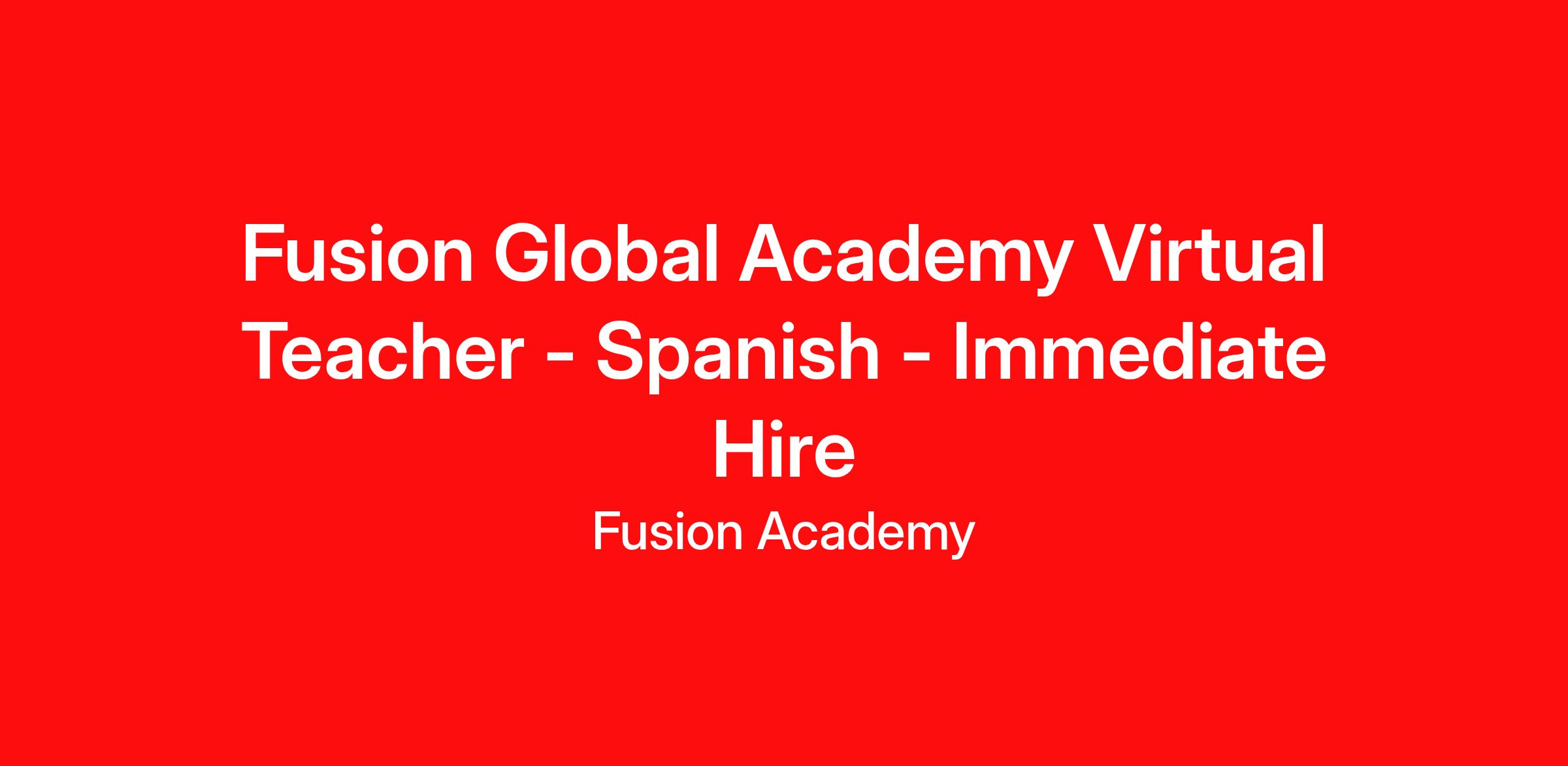 Fusion Global Academy has an opening for a Spanish language and culture Teacher. This position provides a student centered, supportive classroom that promotes compassion and tolerance, emotional security, resourcefulness, and independent critical thinking while addressing the individual academic and emotional needs of each student through Fusion's differentiated approach.