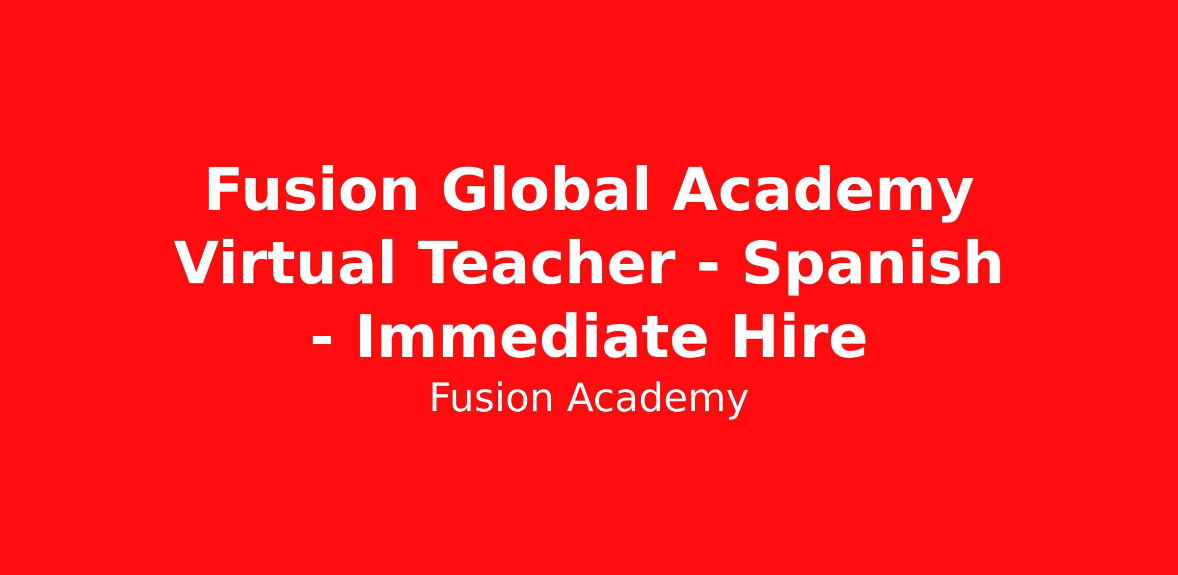 Fusion Global Academy has an opening for a Spanish language and culture Teacher. This position provides a student centered, supportive classroom that promotes compassion and tolerance, emotional security, resourcefulness, and independent critical thinking while addressing the individual academic and emotional needs of each student through Fusion's differentiated approach.