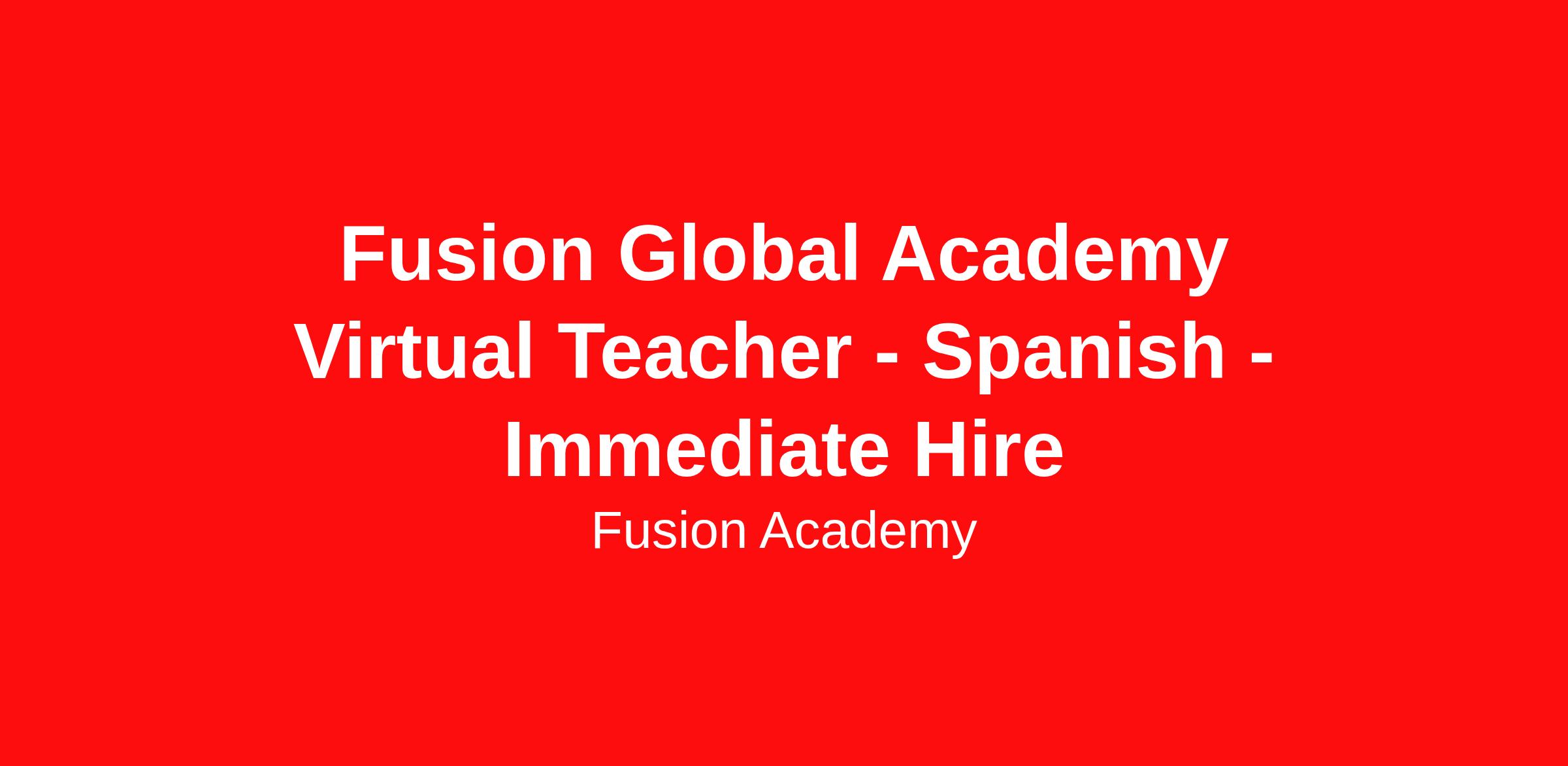 Fusion Global Academy has an opening for a Spanish language and culture Teacher. This position provides a student centered, supportive classroom that promotes compassion and tolerance, emotional security, resourcefulness, and independent critical thinking while addressing the individual academic and emotional needs of each student through Fusion's differentiated approach.