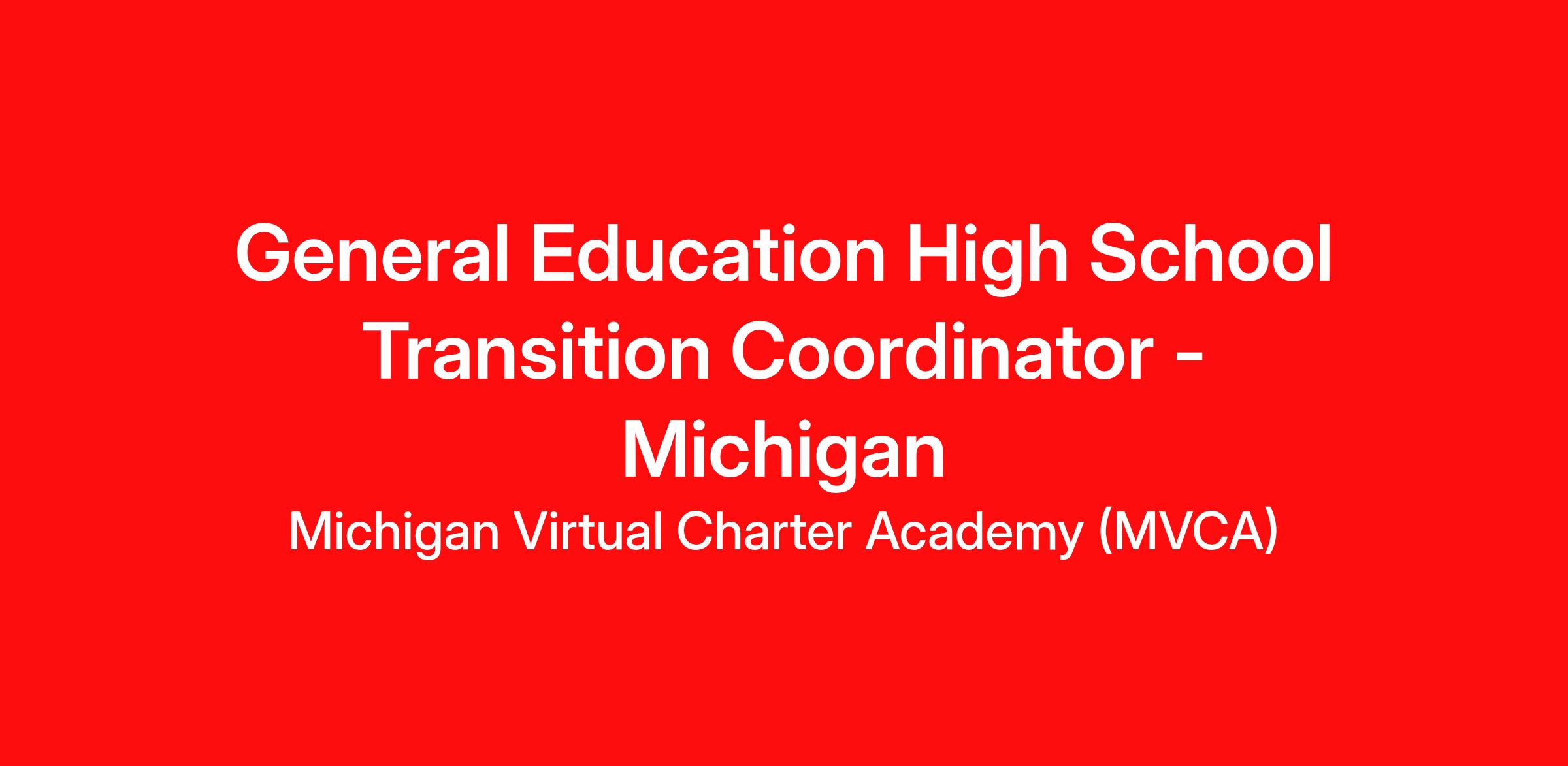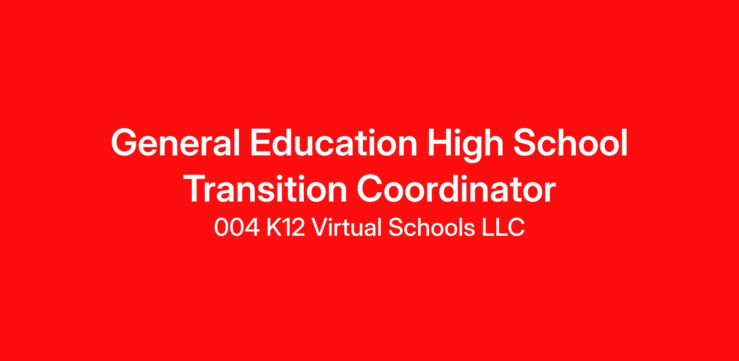 The General Education Transition Coordinator oversees transition-related activities at the district level. The role assists staff in providing education and transition services that are critical to the success of students by providing guidance and training in a manner that is compliant with all pertinent laws and regulations. Services are provided for all levels of transition planning including, Middle School into High School and High School into the workforce/military or postsecondary training/education. The position also assists in the completion of related reports that may be required by the school/state level. The General Education Transition Coordinator facilitates communications between students, parents, staff, school administration and agencies.