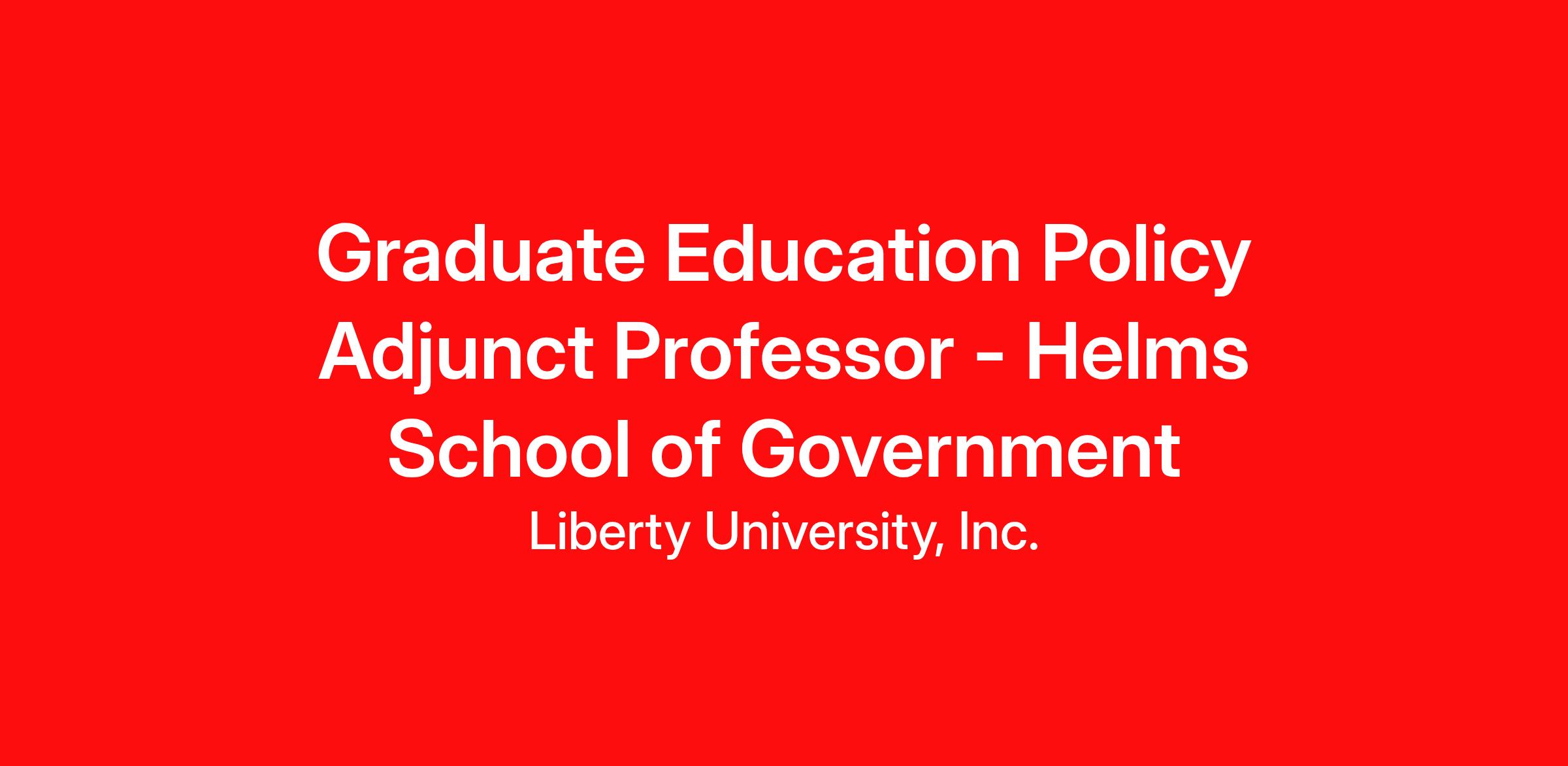 The Graduate Education Policy Adjunct Professor position is considered an Online Adjunct Professor position with the Helms School of Government and is expected to instruct students in accordance with on the university standards of instruction and fulfill all administrative obligations. This position will be assigned an Instructional Mentor as director supervisor. Further details regarding job duties and expectations are as follows in the additional job description section: