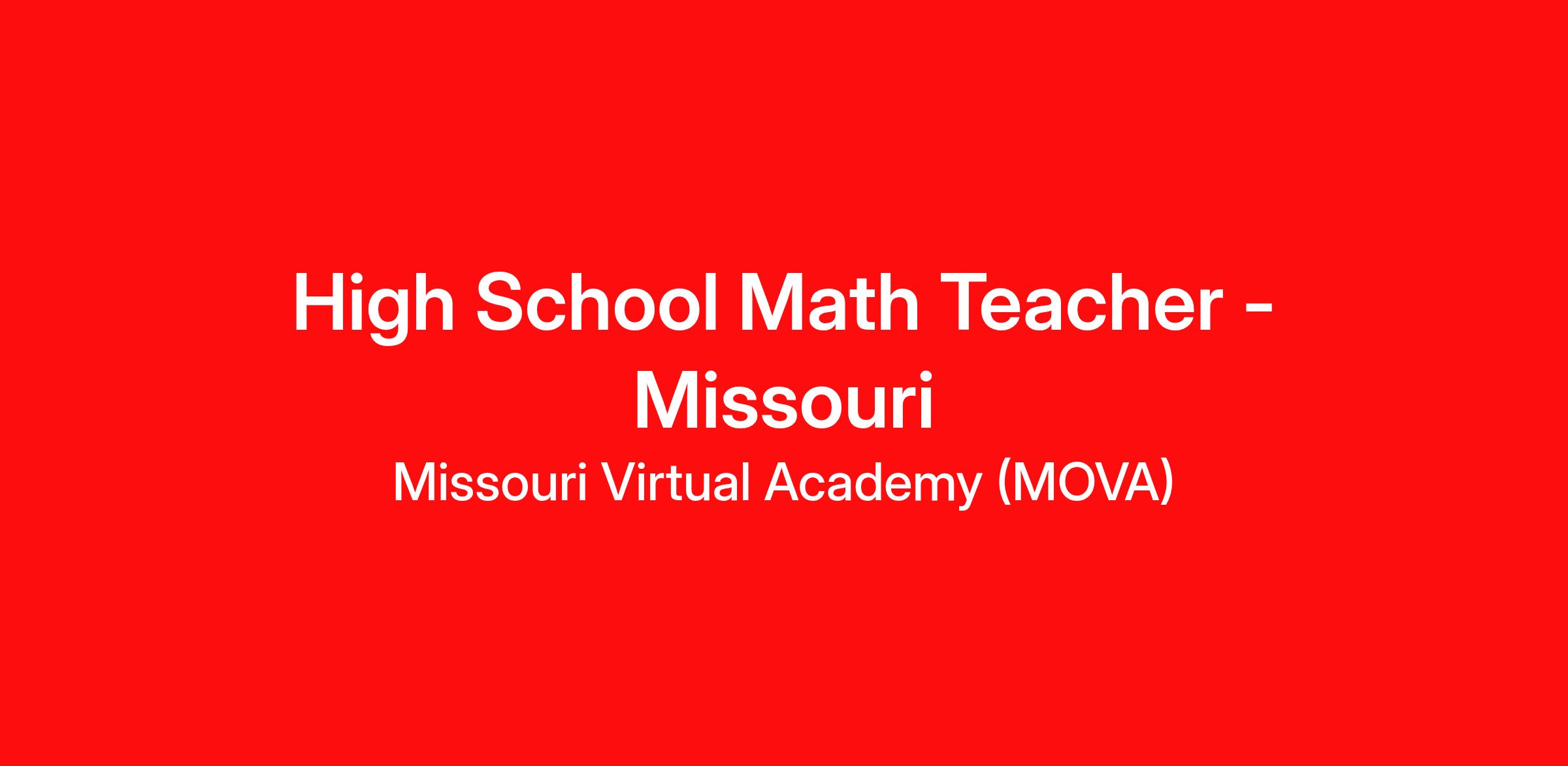 Passionate Educators are needed at the Stride K12 partner school, Missouri Virtual Academy (MOVA) We want you to be a part of our talented team!