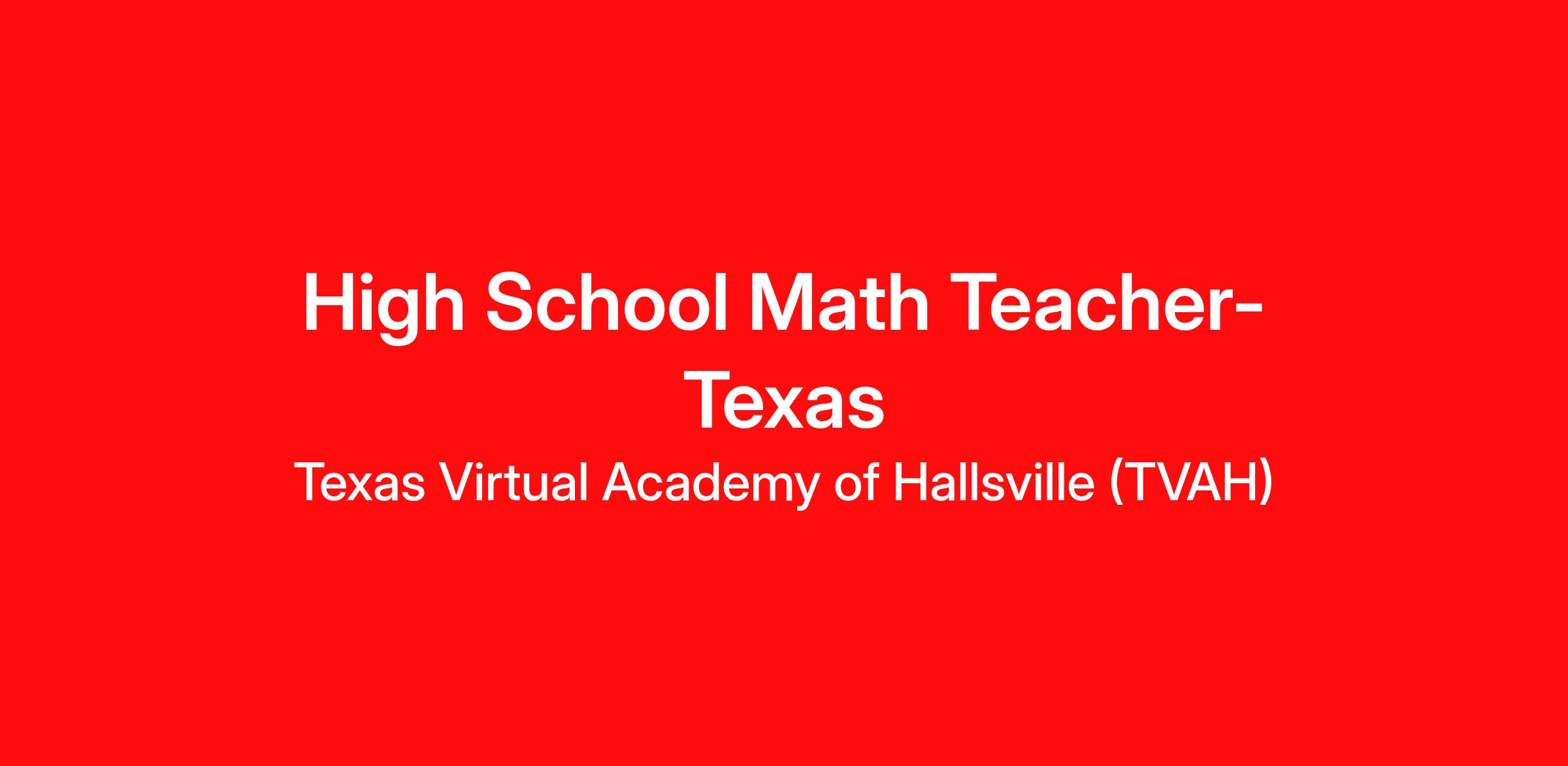 Required Certificates and Licenses: Active Texas High School Mathematics Teaching Certification