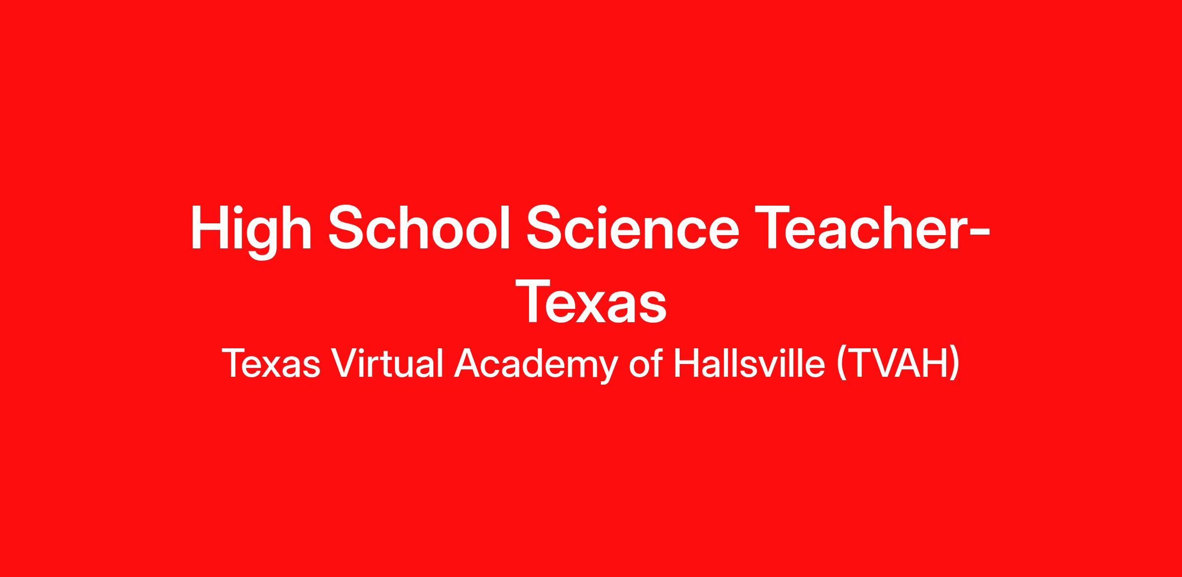 Passionate Educators are needed at Texas Virtual Academy of Hallsville (TVAH). We want you to be a part of our talented team!