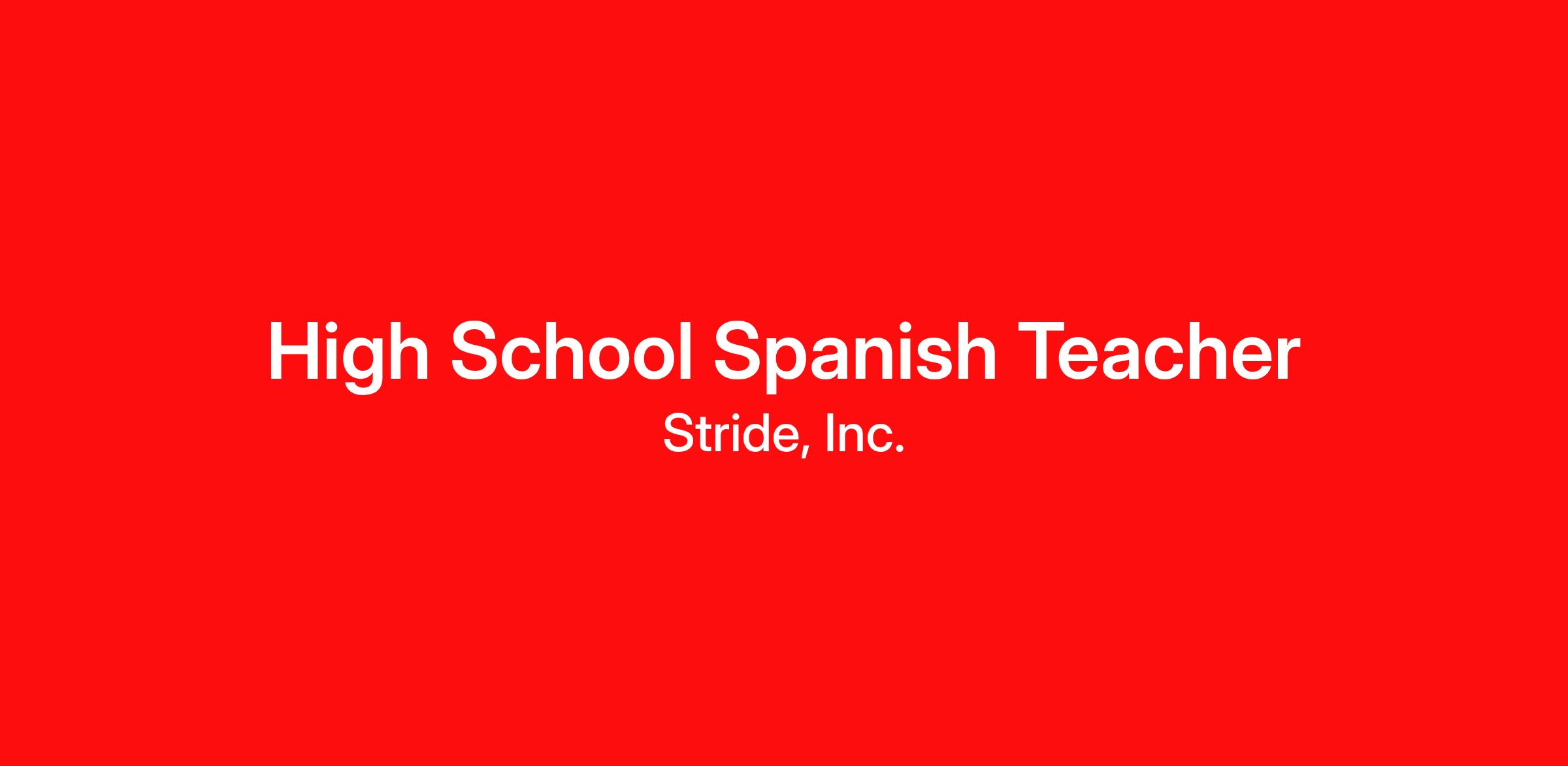 The High School Spanish Teacher is a highly qualified, state certified educator responsible for delivering specific course content in an online environment. High School Spanish Teachers provide instruction, support, and guidance, manage the learning process, and focus on students’ individual needs. High School Spanish Teachers monitor student progress through Stride K12’s learning management system. They actively work closely with students and parents/learning coaches to advance each student’s learning toward established goals. High School Spanish Teachers typically work from home.