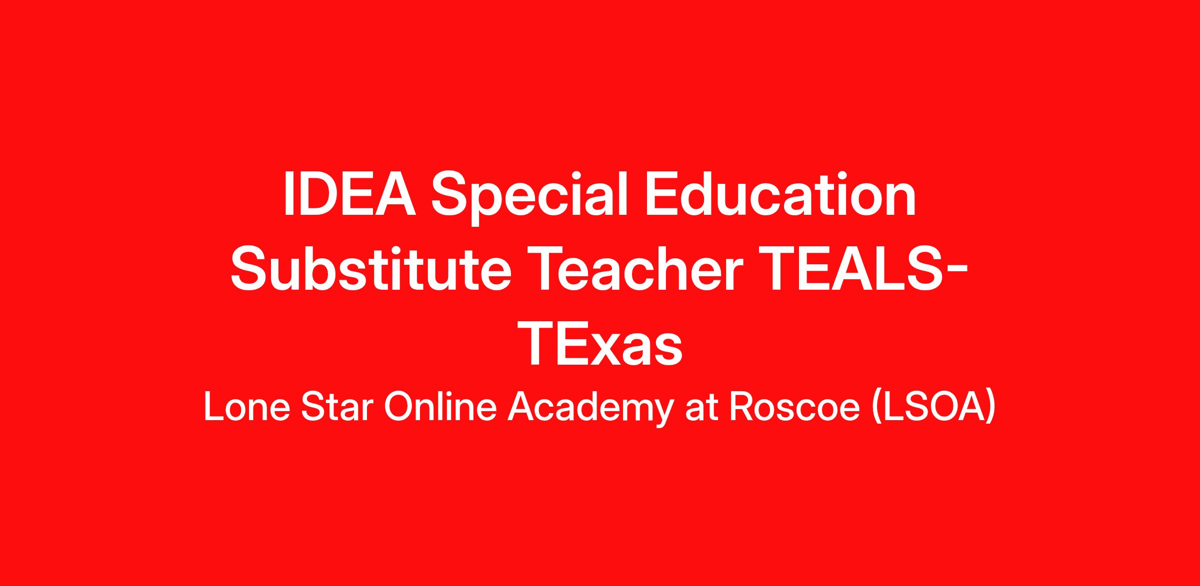 Passionate IDEA Special Education Substitute Teacher TEALS are needed at the Stride K12 partner school, Lone Star Online Academy at Roscoe (LSOA). We want you to be a part of our talented team!