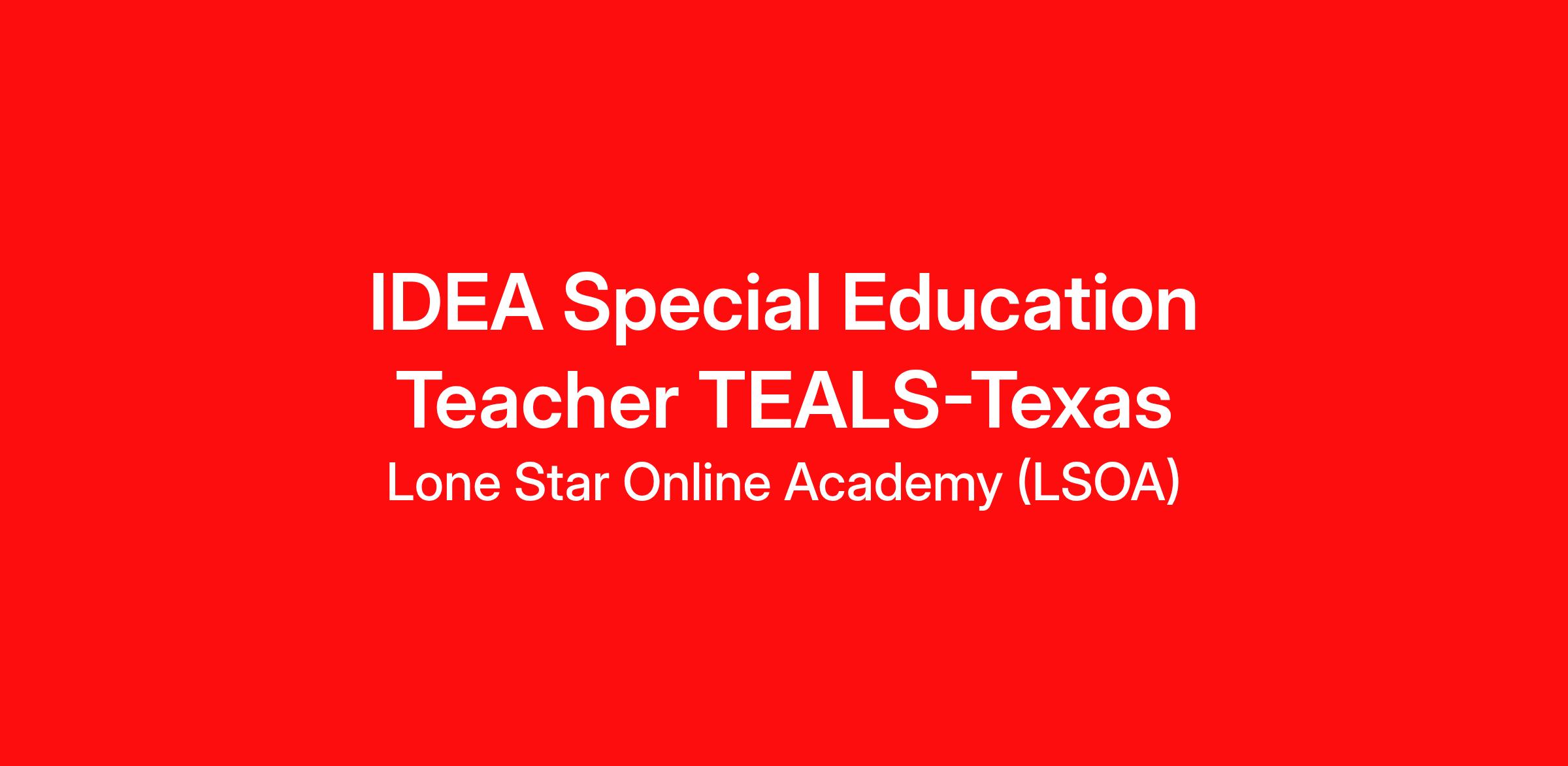 Passionate IDEA Special Educaton Teacher TEALS are needed at the Stride K12 partner school, Lone Star Online Academy at Roscoe (LSOA). We want you to be a part of our talented team!