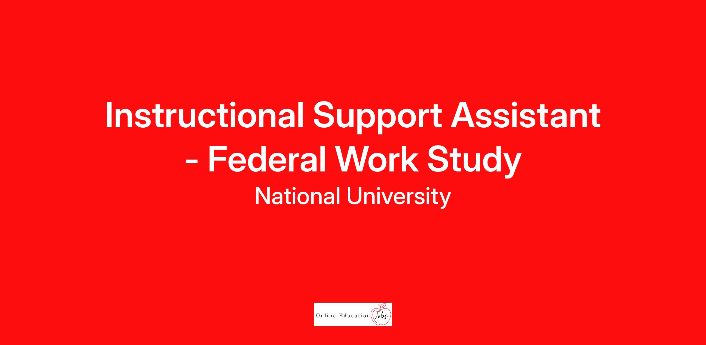 The Federal Work Study position is a part-time, student worker opportunity with National University. The student will provide general support and assistance to the Online Learning and Instructional Support Department and will work on special projects as assigned and in alignment with the student’s stated interests and career goals.