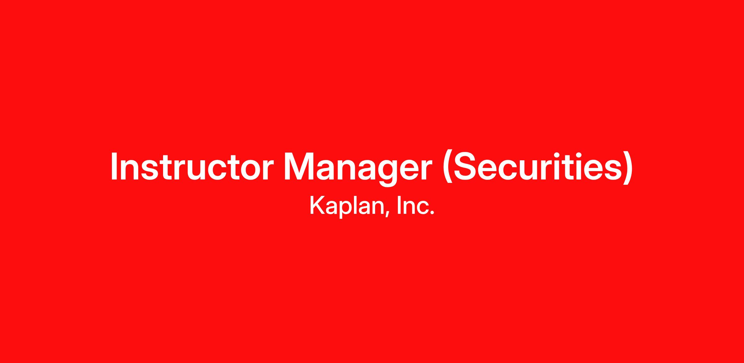 Instructor Manager (Securities)