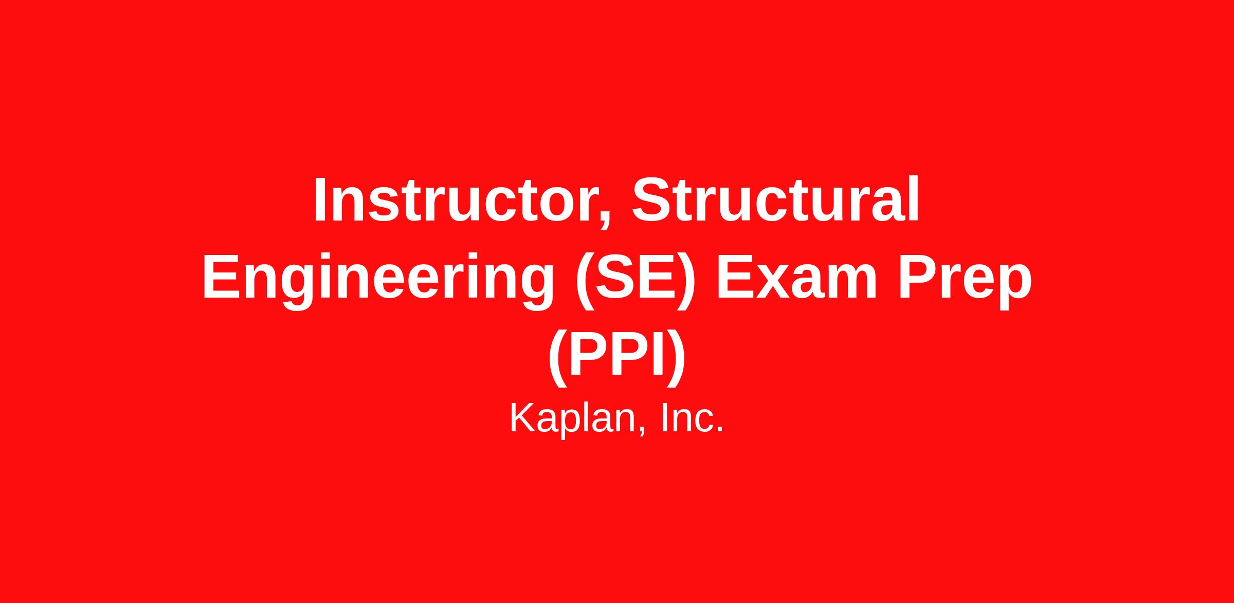 Instructor, Structural Engineering (SE) Exam Prep (PPI)