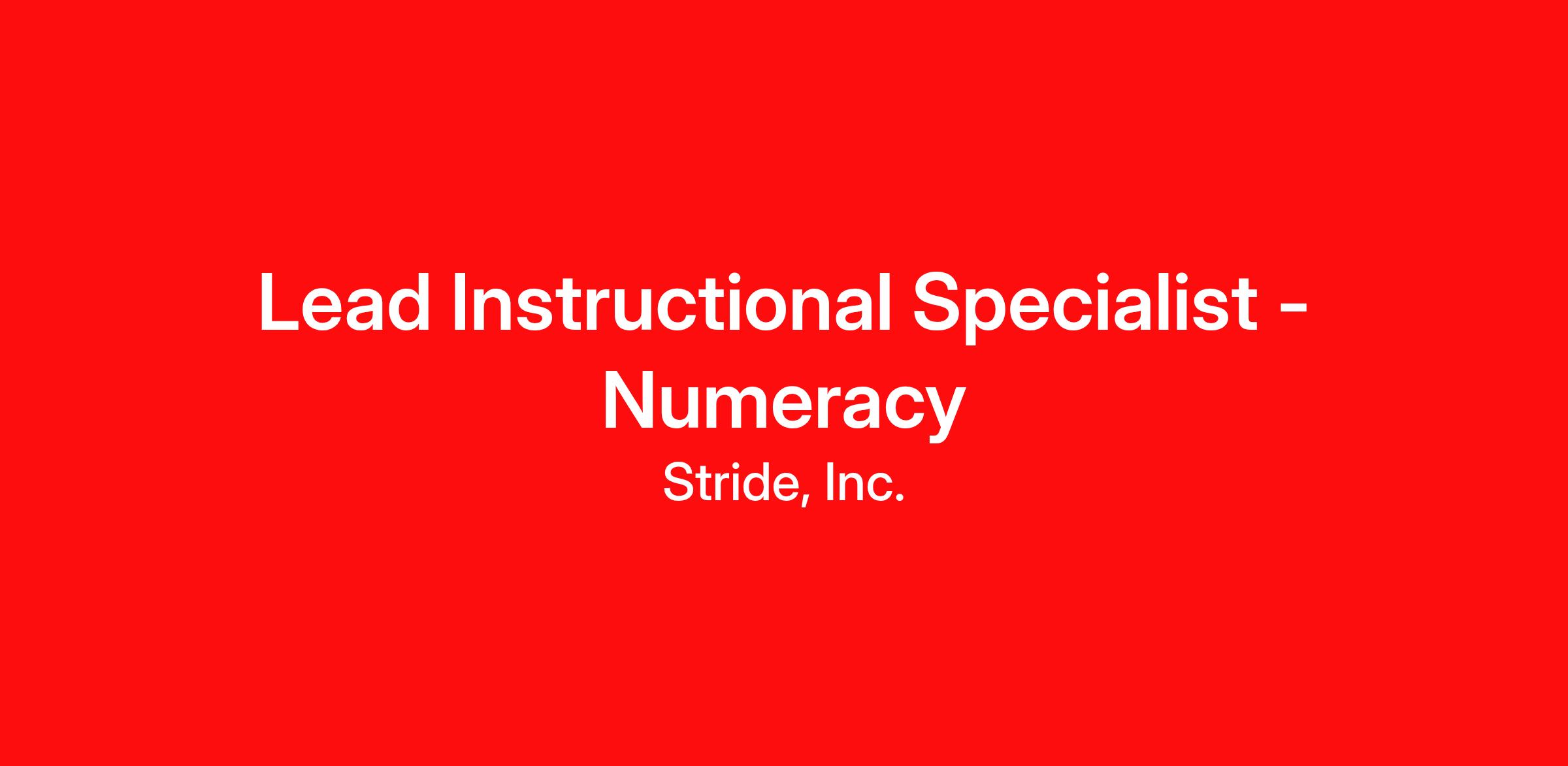 SUMMARY: The Lead Instructional Specialist – Numeracy will drive instructional excellence in mathematics across K–12 classrooms, with a focus on building foundational numeracy skills, accelerating student achievement, and improving performance on state assessments. This role will provide direct coaching and consultation to teachers and school leaders, model high-impact instructional strategies, and analyze student data to inform instructional decisions. The ideal candidate is deeply knowledgeable about math pedagogy, passionate about building teacher capacity, experienced with online learning models, and confident conducting virtual observations and coaching in synchronous and asynchronous environments.