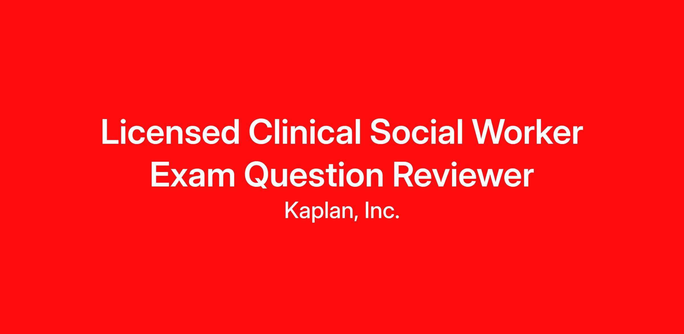 Project Description Kaplan is seeking a Licensed Clinical Social Worker Exam Subject Matter Expert to join us as a Contractor to contribute to the development of test-like exam questions. This is a remote and asynchronous opportunity, allowing you the flexibility to complete the work outside of standard business hours.