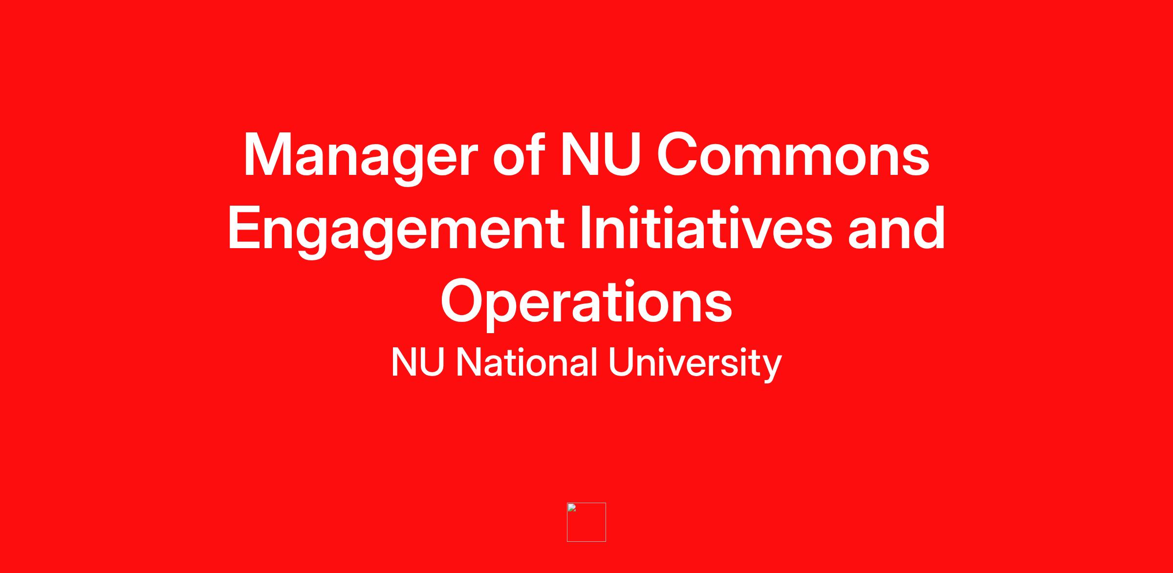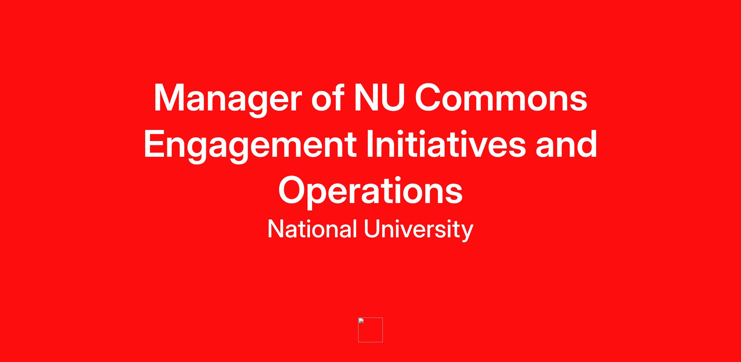 The Manager of NU Commons Engagement Initiatives and Operations provides operational leadership to the NU Commons, that bridges our strategic direction with effectively managing our daily operations. The NU Commons is a collaborative and community-driven environment that gives students access to our vibrant university community for connection and support. The Manager of NU Commons Engagement Initiatives and Operations oversees the operational and programmatic functions of the Commons guiding the development and implementation of Commons communities and initiatives, university wide engagement and resources that support schools, departments and individual community members. The Manager of NU Commons Engagement Initiatives and Operations partners and works collaboratively with leadership, schools and departments throughout the university to develop and maintain an accessible and vibrant university community life.