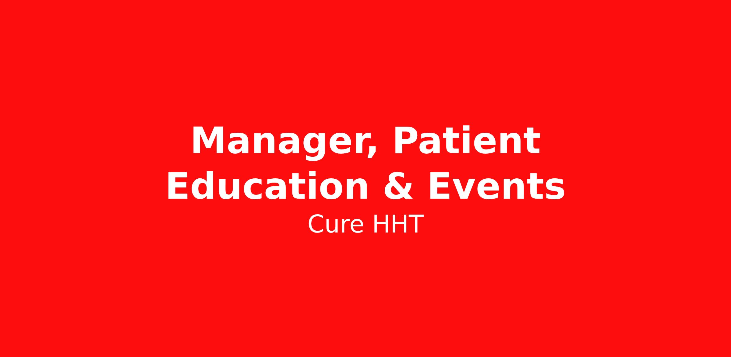 The Manager, Patient Education & Events leads the development and delivery of Cure HHT’s educational programming and community event experiences that inform, empower, and connect the HHT community.