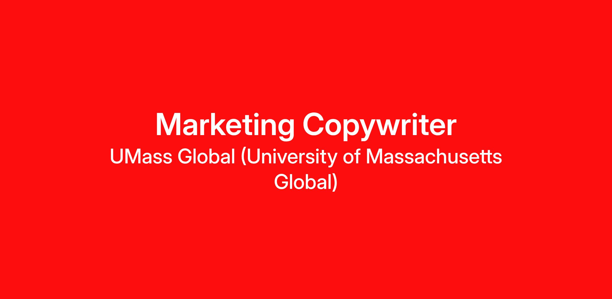 The Marketing Copywriter is responsible for developing and optimizing compelling, brand-aligned content that supports all aspects of marketing for UMass Global’s diverse educational programs. This role requires a strategic, data-driven approach to content creation, leveraging AI tools for efficiency and optimization, and maintaining the integrity of UMass Global’s distinctive, student-focused brand voice.