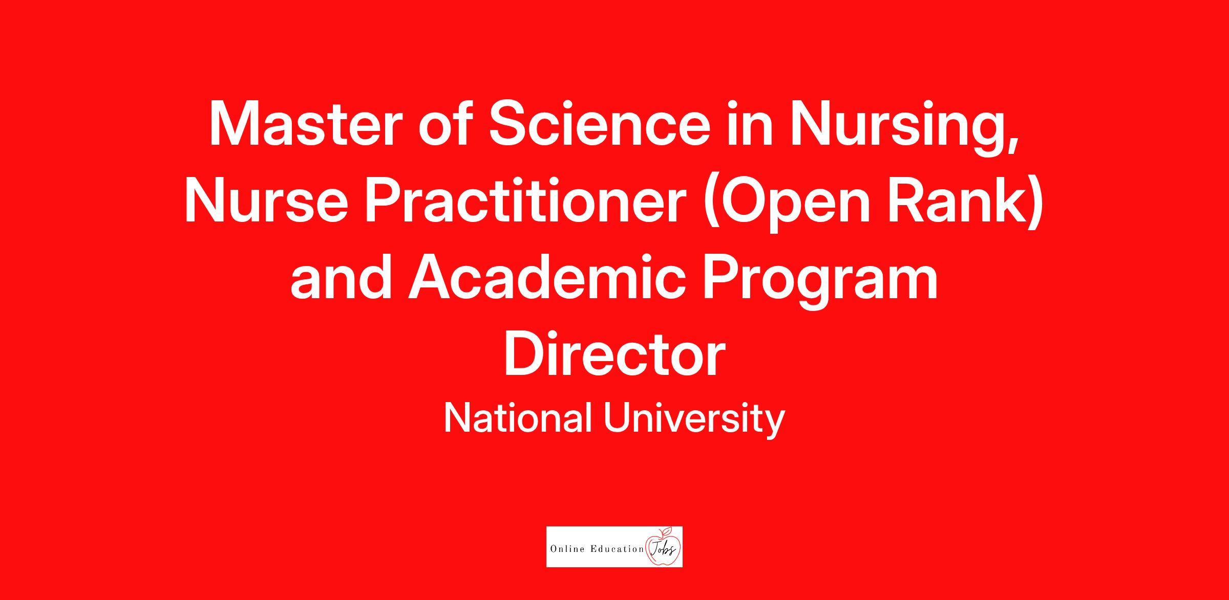 The Department of Nursing, in the School of Health Professions at National University invites applications for Full-time Faculty (Open Rank) in the Master of Science in Nursing Nurse Practitioner program. Rank is commensurate with qualifications and experience. The successful candidate will have a demonstrated record of excellence in teaching and scholarship in their field and a commitment to serving the university’s diverse adult student body This position works closely with other faculty within the discipline and administration contributing to programmatic strategies that ensure program quality, student engagement, and success.