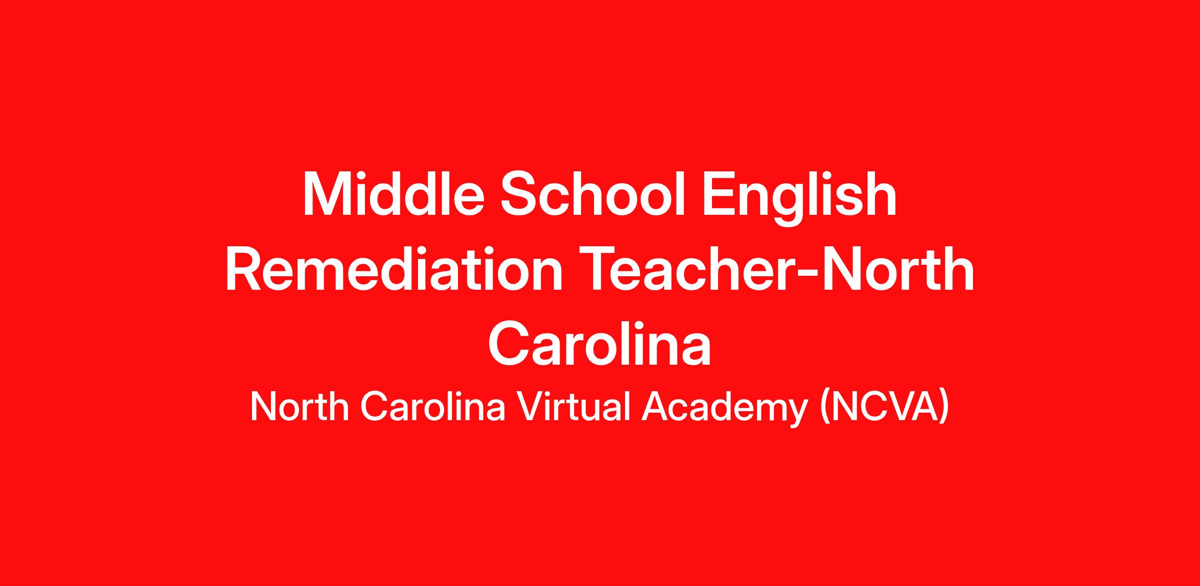 Required Certificates and Licenses: North Carolina Middle School Teaching Certification Required