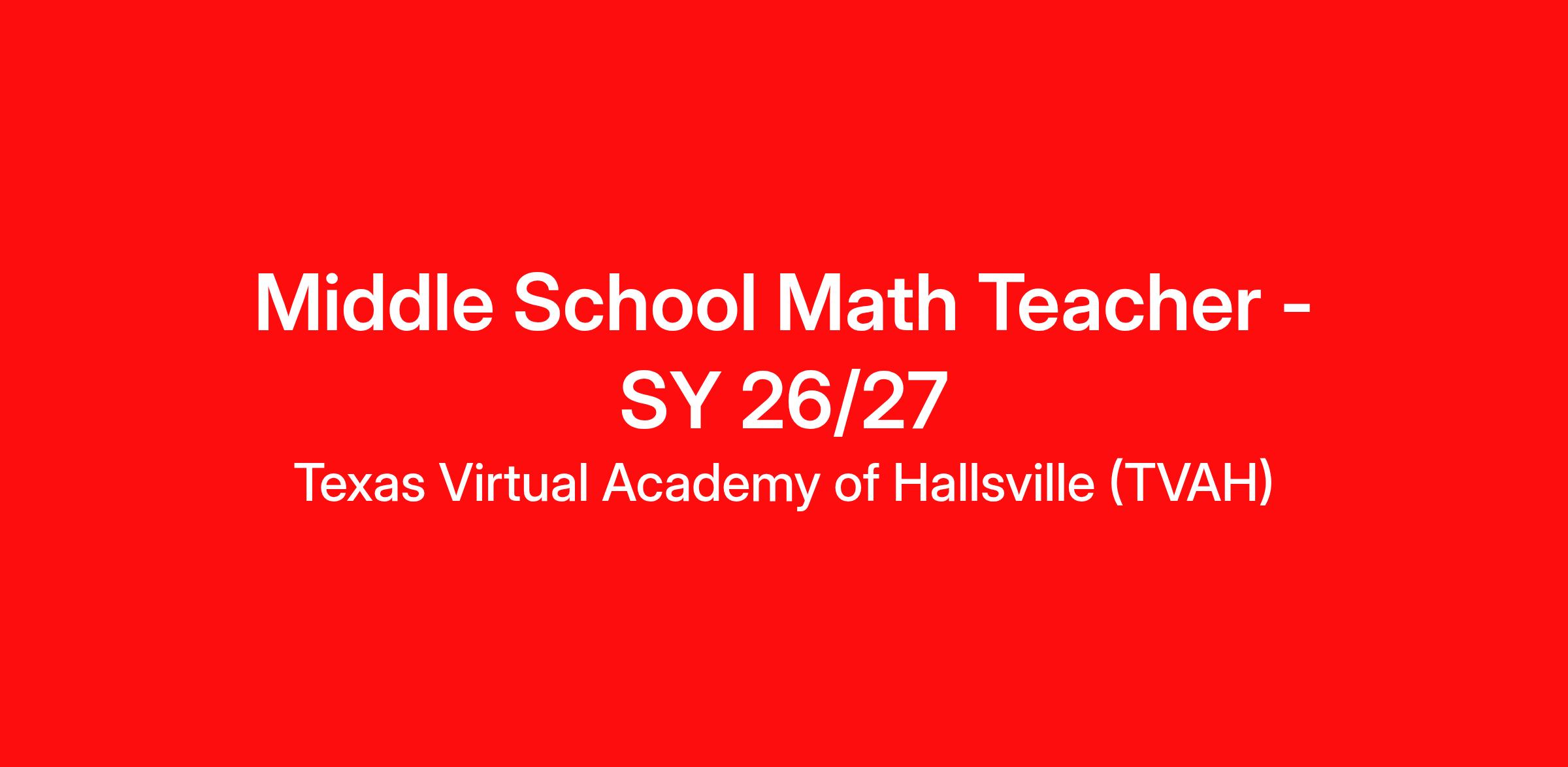 Passionate Educators are needed at Texas Virtual Academy of Hallsville (TVAH). We want you to be a part of our talented team!
