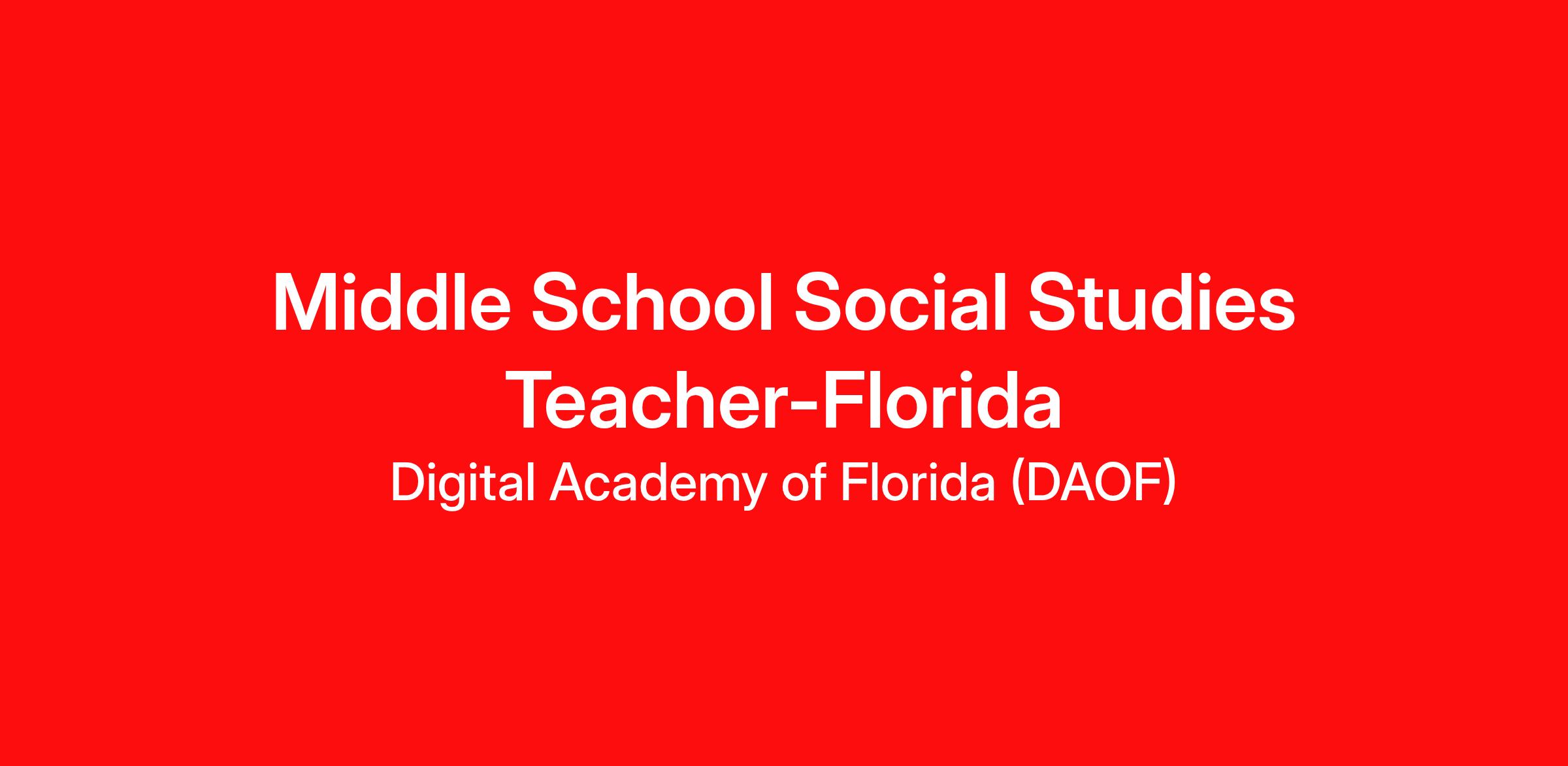 Required Certificates and Licenses: Florida 5 Year Professional 5-9 OR 6-12 Social Science Certification
