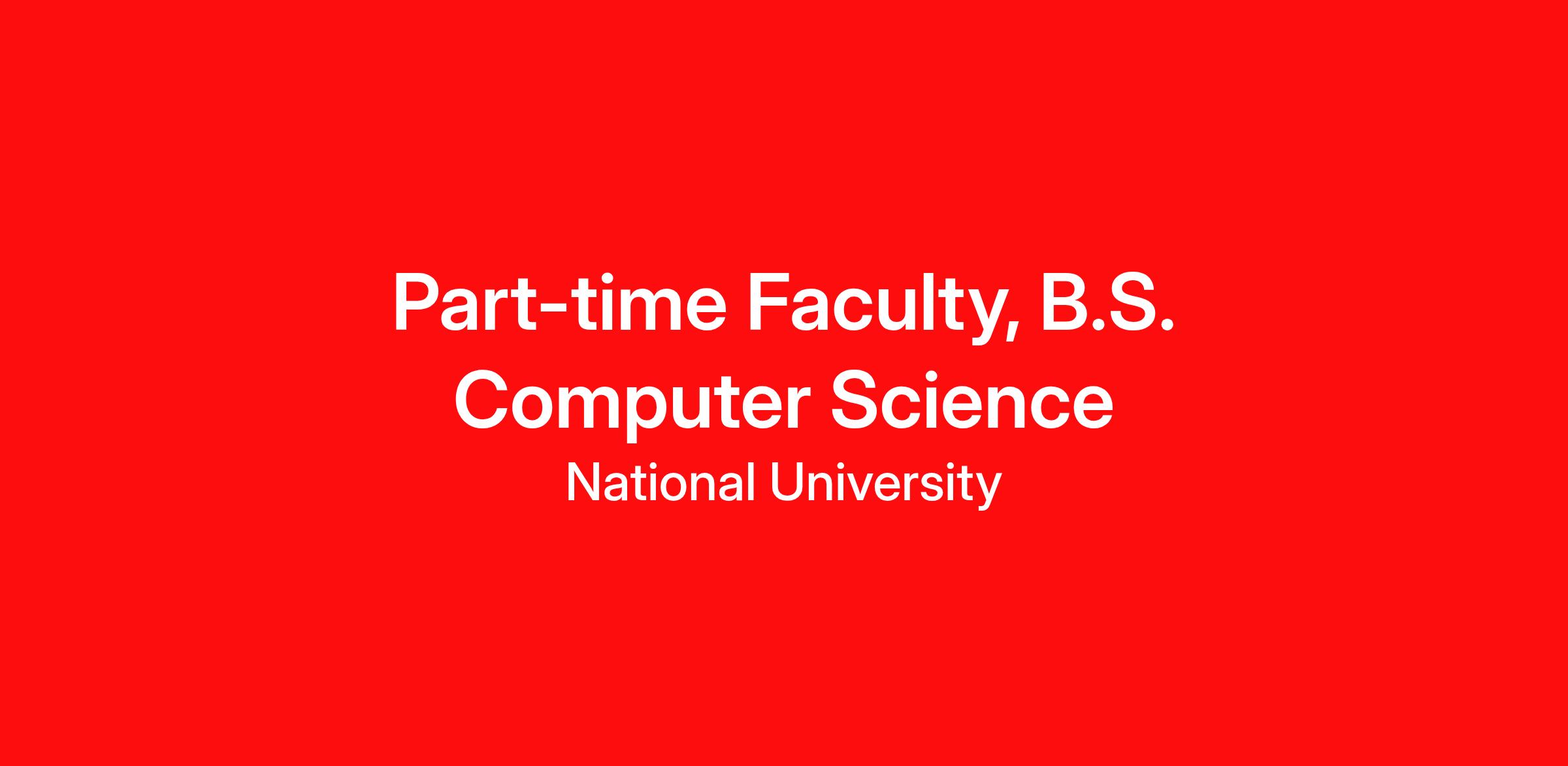 The Department of Engineering, Data, and Computer Sciences, in the College of Business, Engineering and Technology at the National University invites applications for part-time faculty with a specialization in Computer Science. The successful candidate will have a demonstrated record of, or potential for excellence in, the following: teaching in their field, a commitment to serving the university’s diverse adult student body, and related scholarship and/or research. This position primarily works closely with the Academic Program Director and other faculty within the program and contributes to ensuring program quality, student engagement, and success.