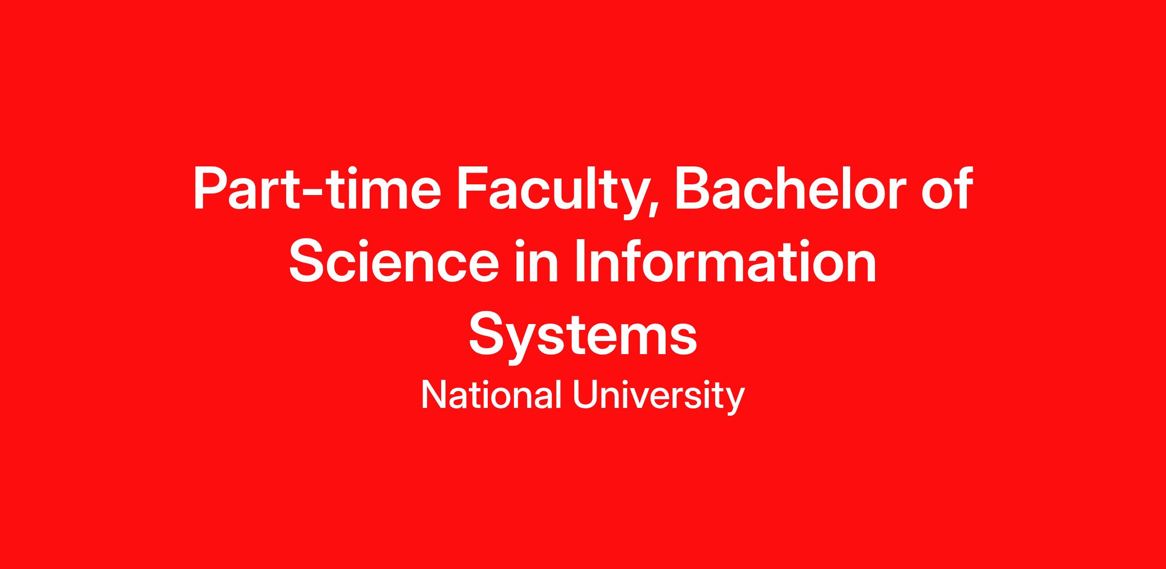 The Department of Cybersecurity & Technology, in the College of Business, Engineering and Technology at the National University invites applications for part-time faculty with a specialization in Information Systems. The successful candidate will have a demonstrated record of or potential for excellence in teaching in their field and a commitment to serving the university’s diverse adult student body. The successful candidate will have the potential for a commitment to serving the university’s diverse adult student body. This position primarily works closely with the Academic Program Director and other faculty within the program and contributes to ensuring program quality, student engagement, and success.